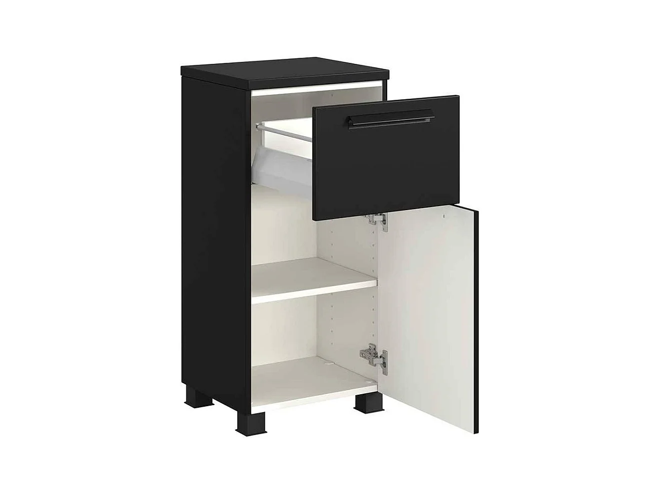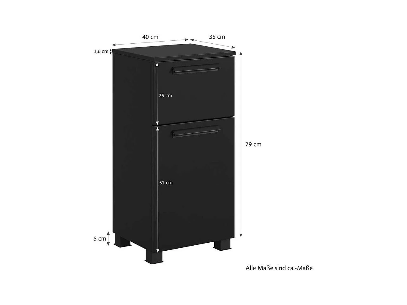 Badezimmerschrank Badschrank in Schwarz mit Metallgriffen