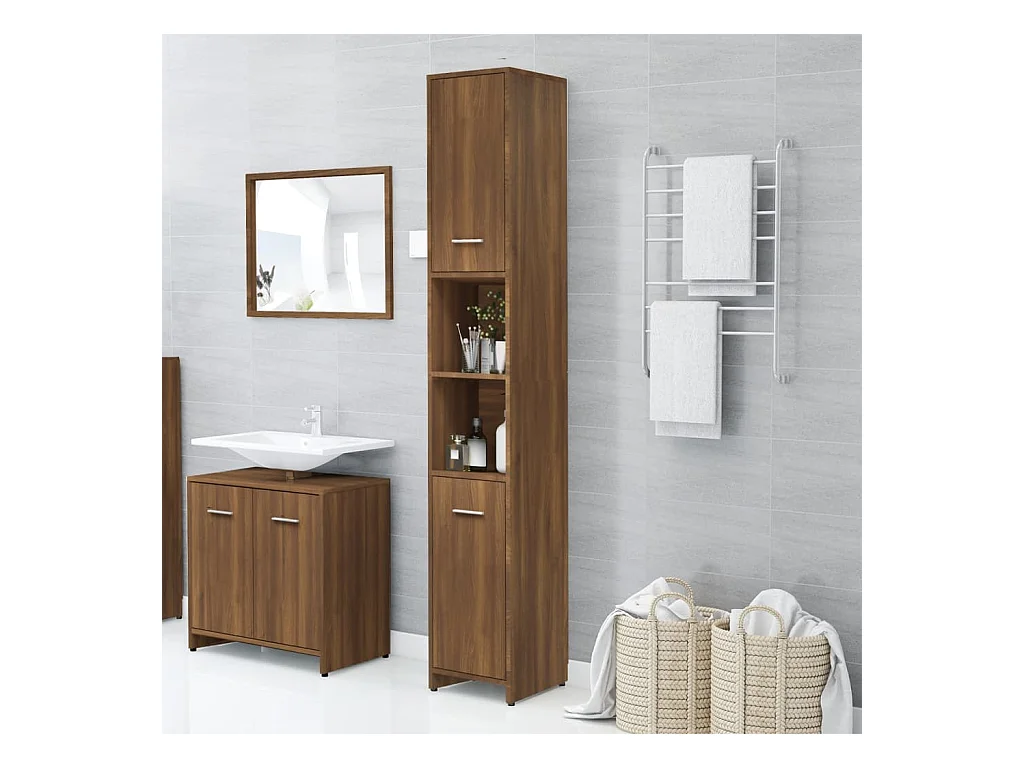 Badezimmerschrank Braune Eiche 30x30x183,5 cm Holzwerkstoff