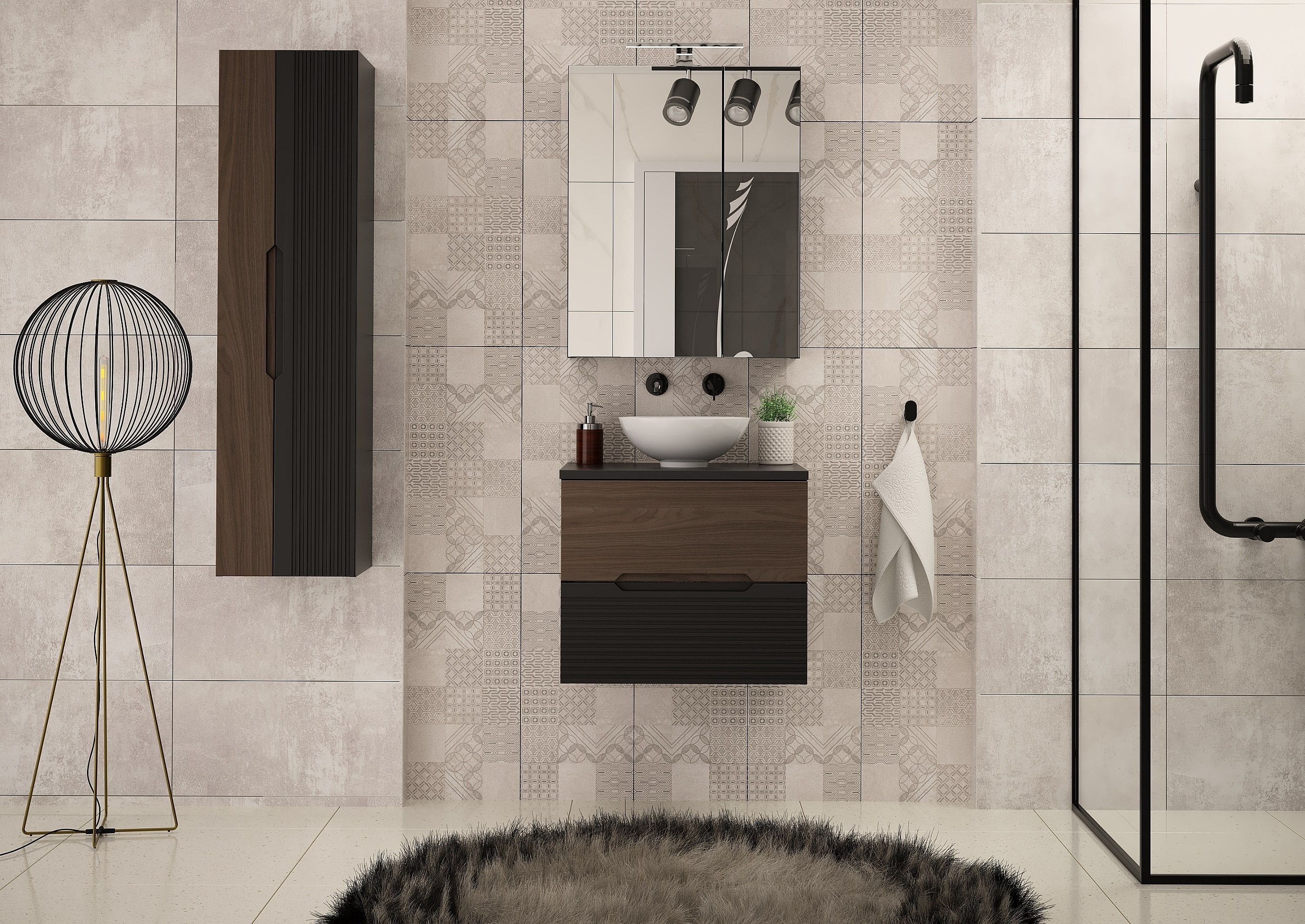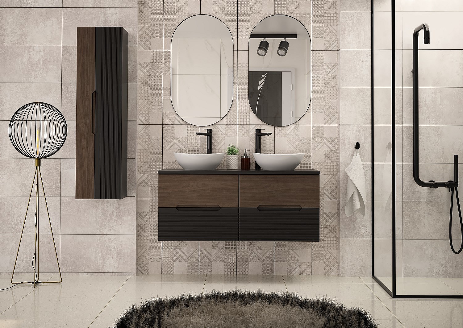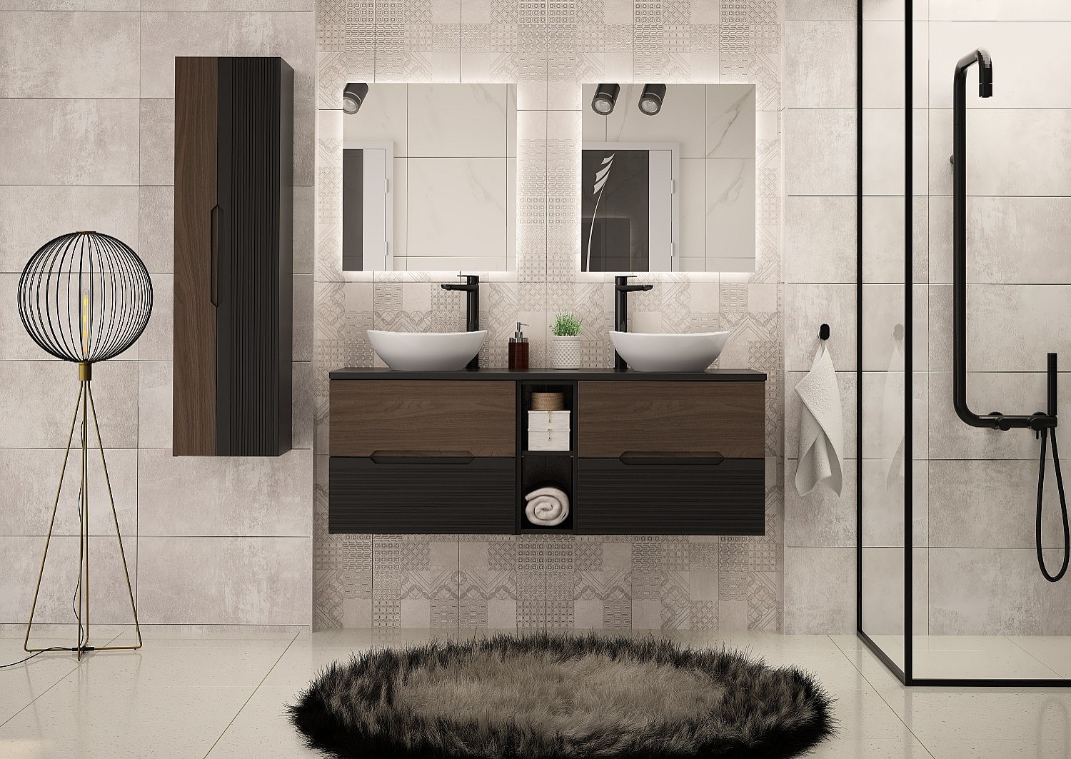 Badezimmerschrank unter Waschbecken 60 cm Schwarz Matt / Nussbaum Avella
