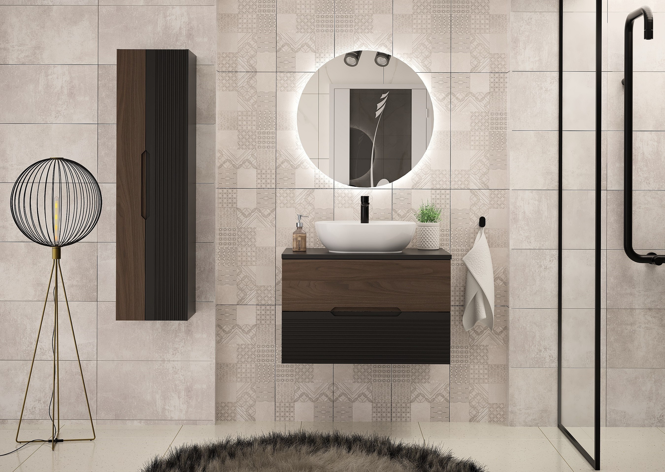 Badezimmerschrank unter Waschbecken 80 cm Schwarz Matt / Nussbaum Avella
