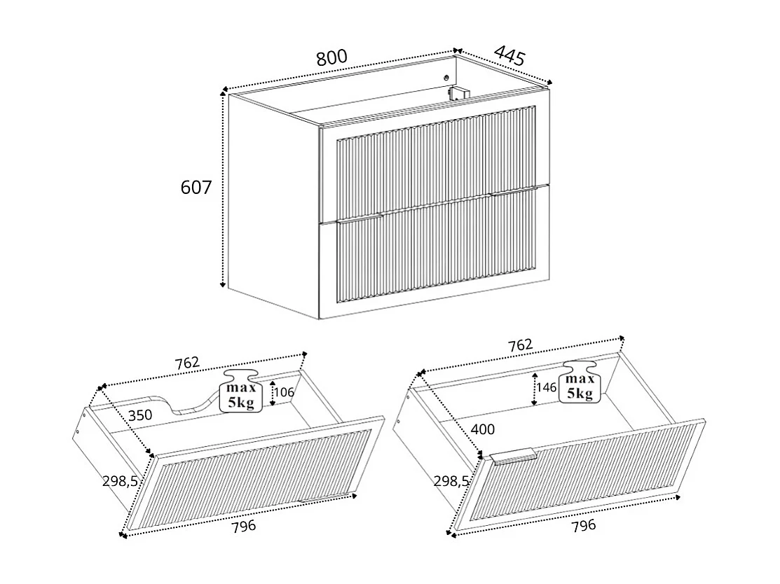 Badezimmerschrank, weiß, 80 x 44,5 x 60,7 cm, Ohne Tischplatte