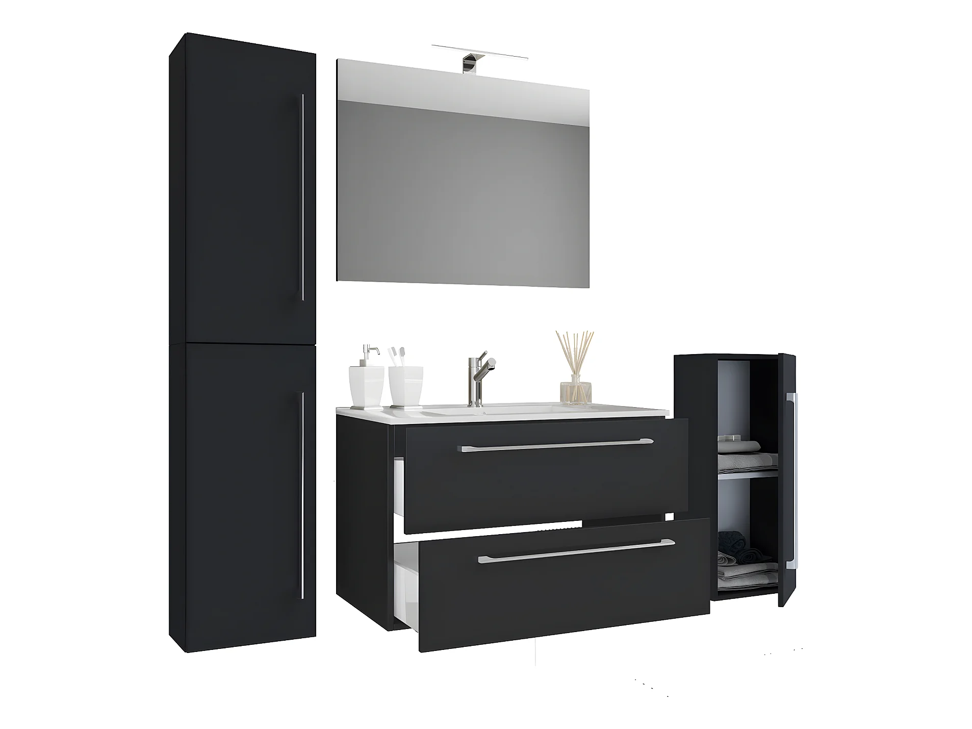 Badinos Badmöbel-Sets A 60 cm, Spiegel Schwarz.