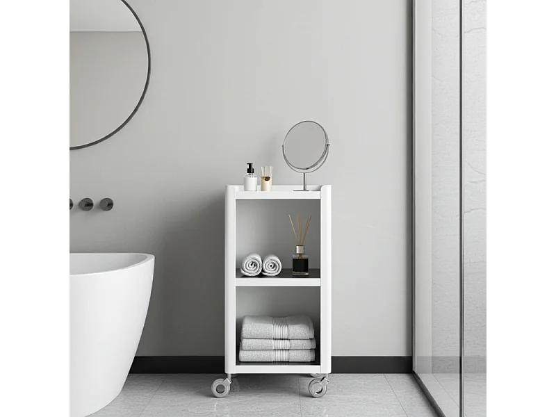 Badrollwagen Badezimmerwagen mit 3 geräumigen Ablagen , Weiß - Edelstahl, LOUISE