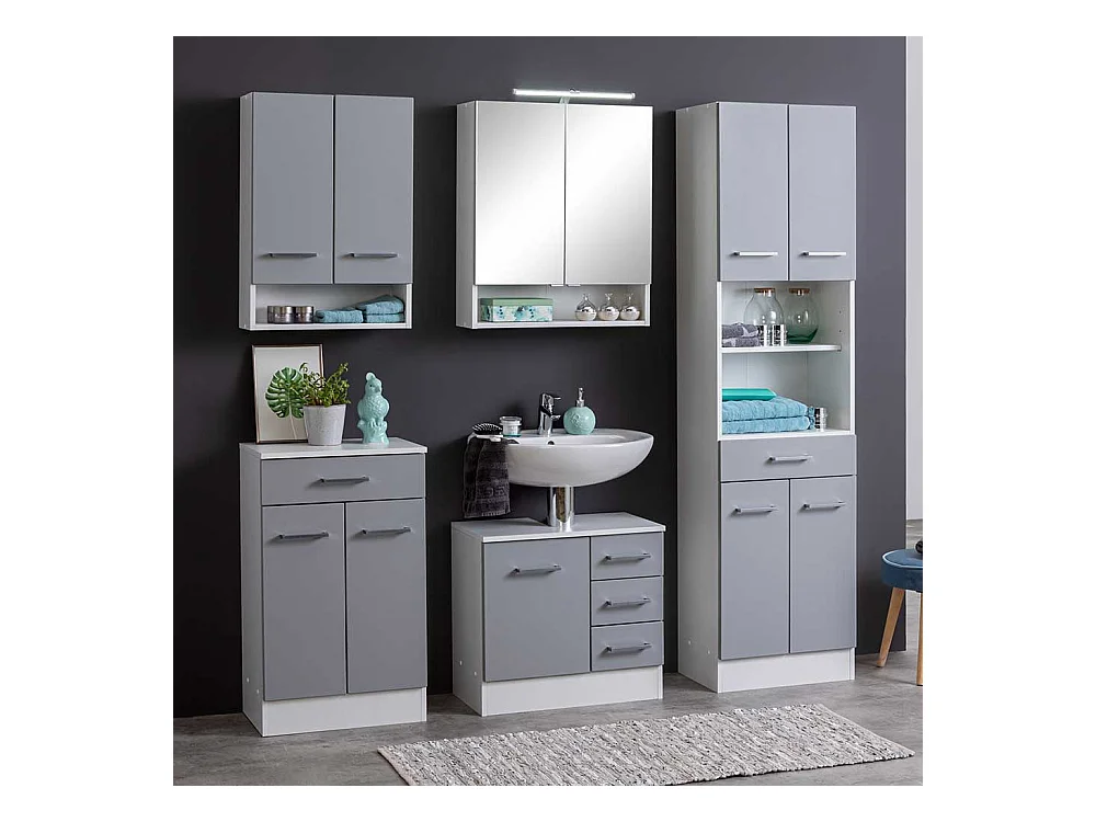 Badschrank in Hellgrau und Weiß 50 cm breit