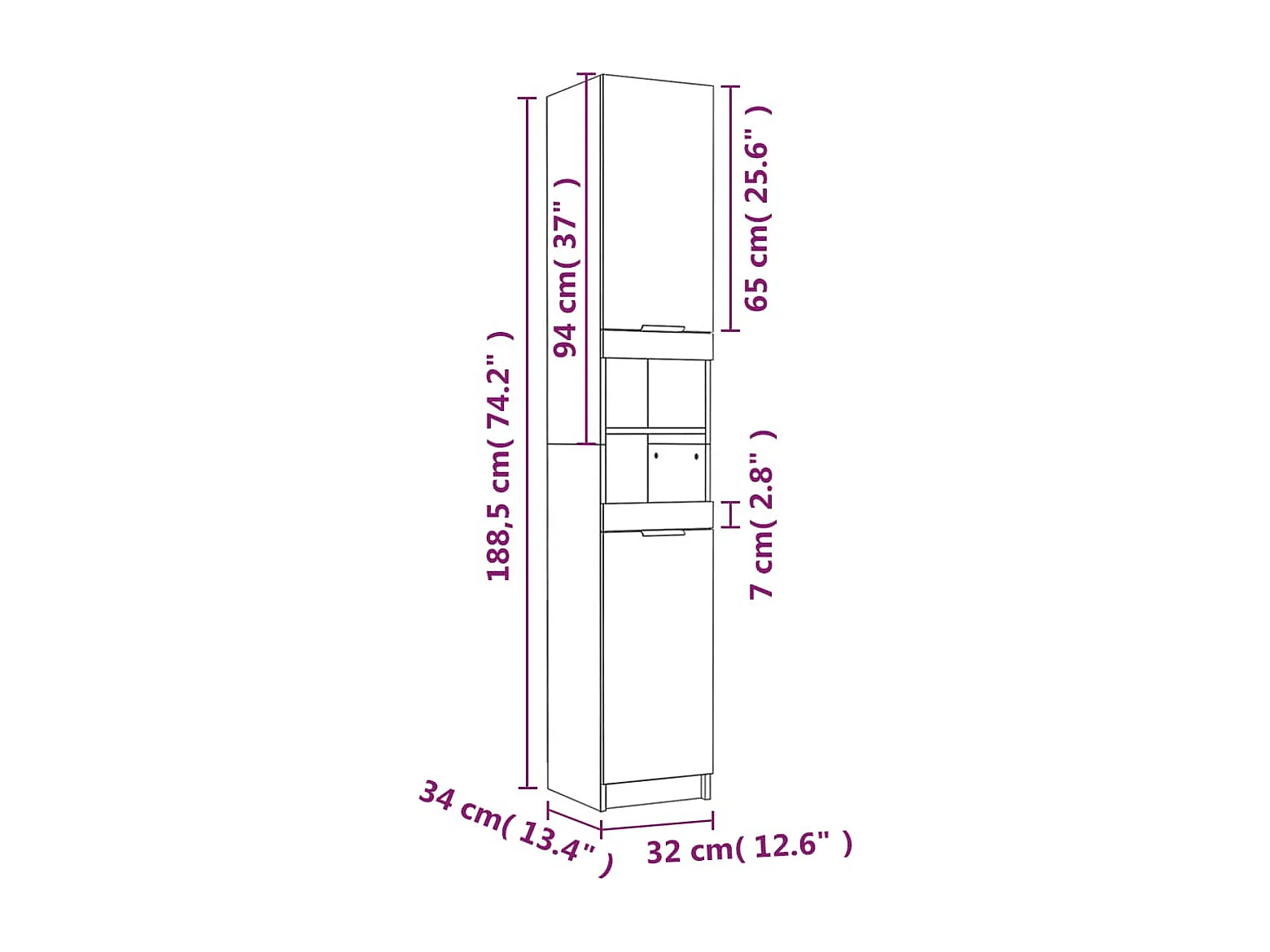 Badschrank Weiß 32x34x188,5 cm Holzwerkstoff
