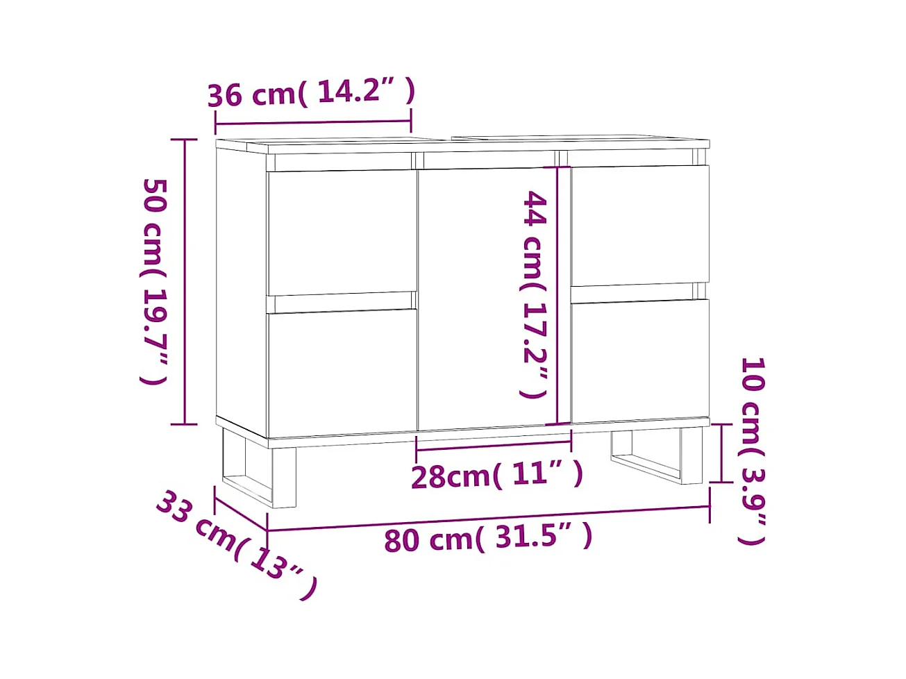 Badschrank Weiß 80x33x60 cm Holzwerkstoff