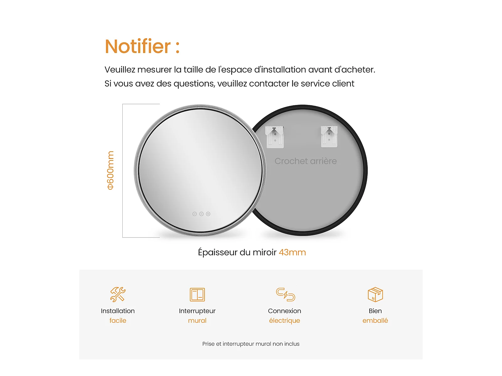 BADSPIEGEL Runder mit Beleuchtung Schwarz Ø60 cm
