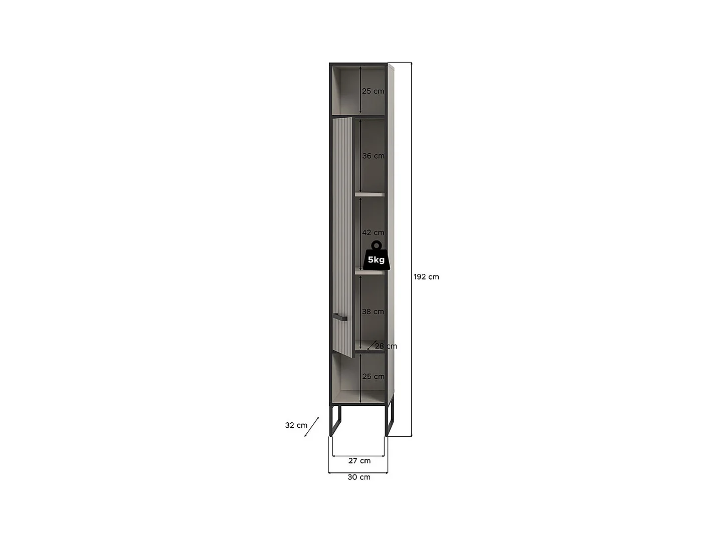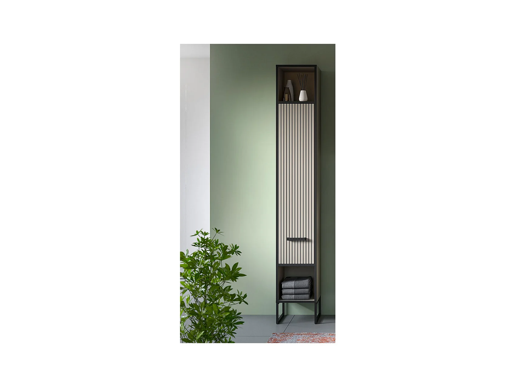 Bagno Hochschrank Bad 1 Tür 2 Fächer hellgrau, cremefarben.
