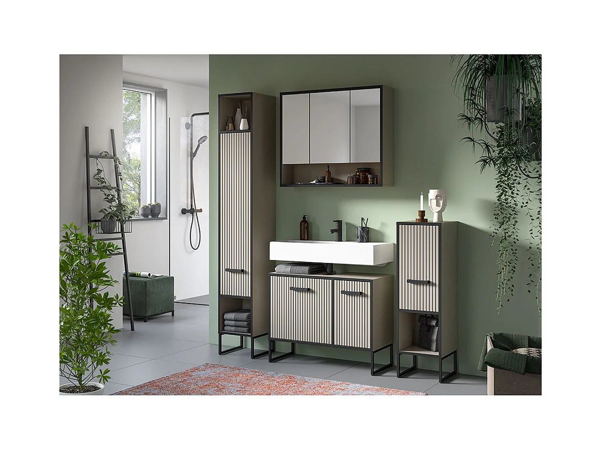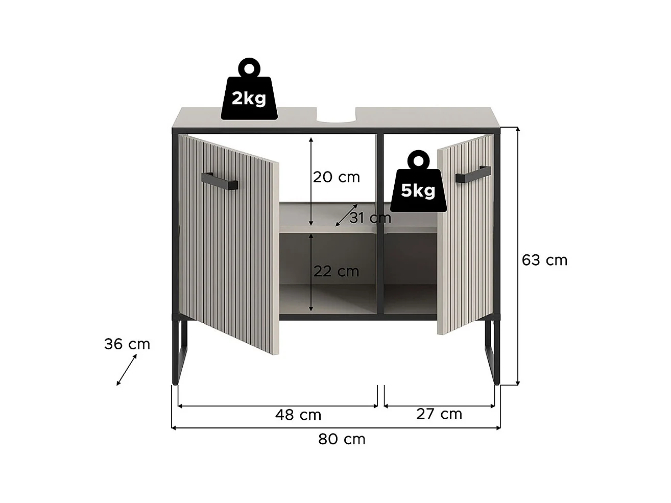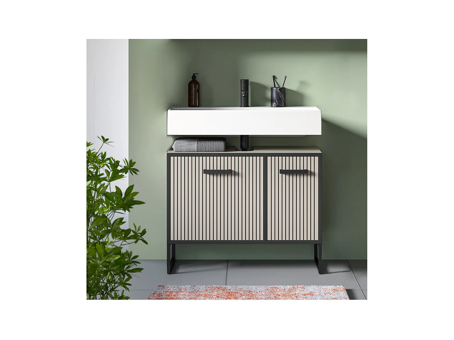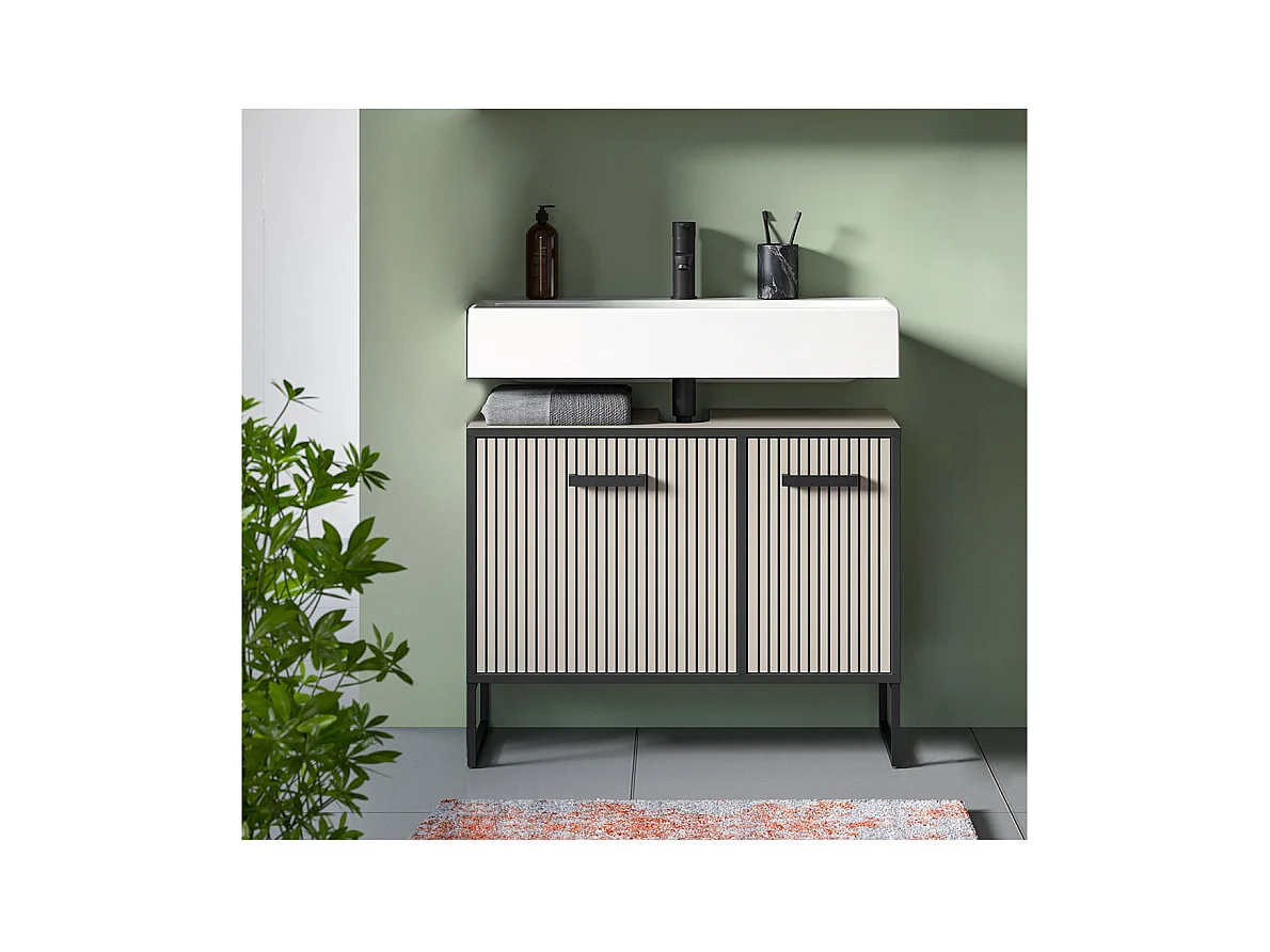 Bagno Waschbeckenunterschrank 2 Türen hellgrau, cremefarben.