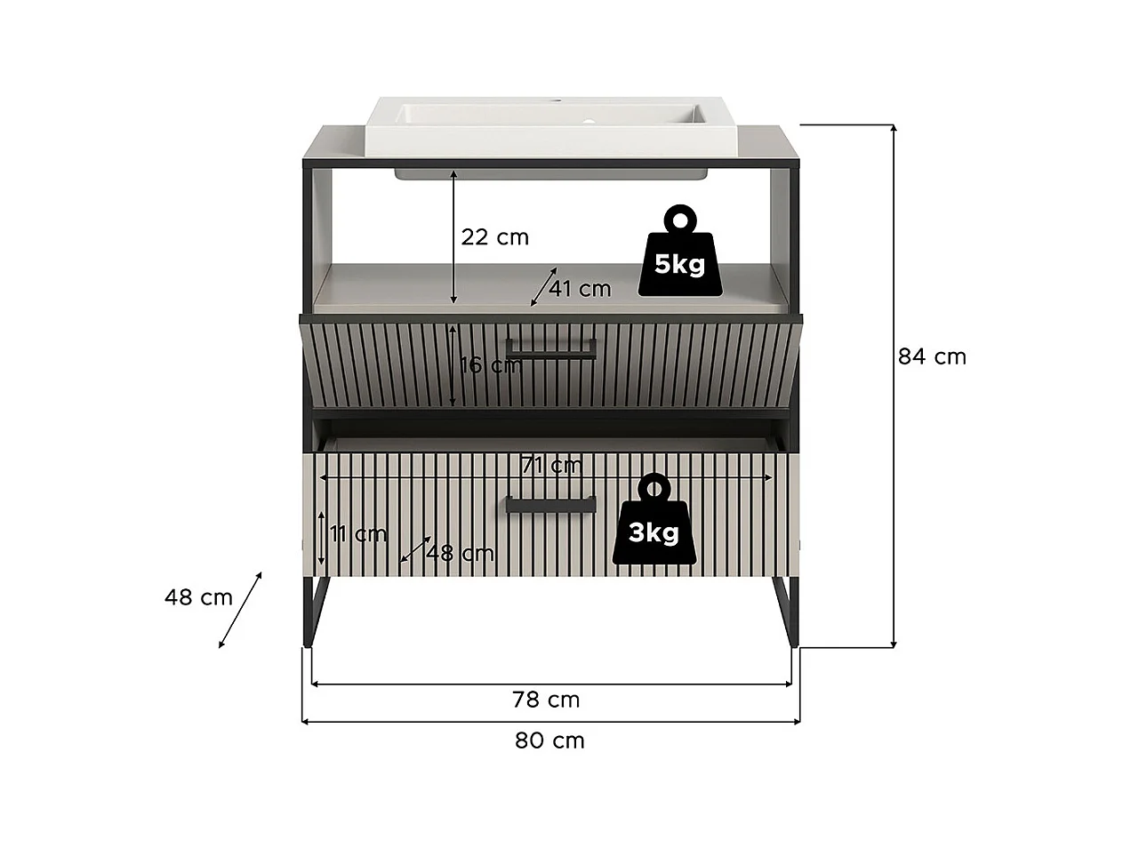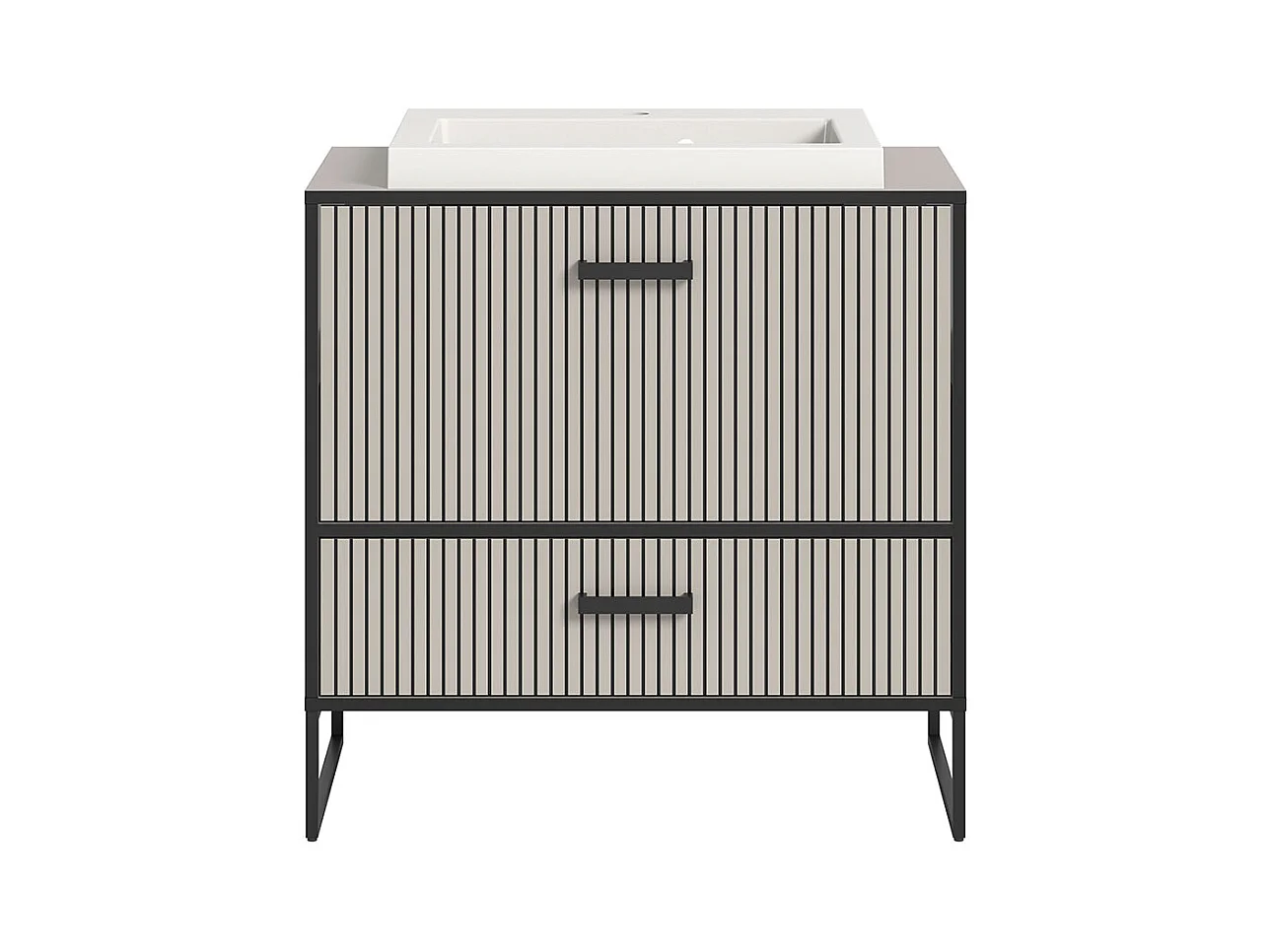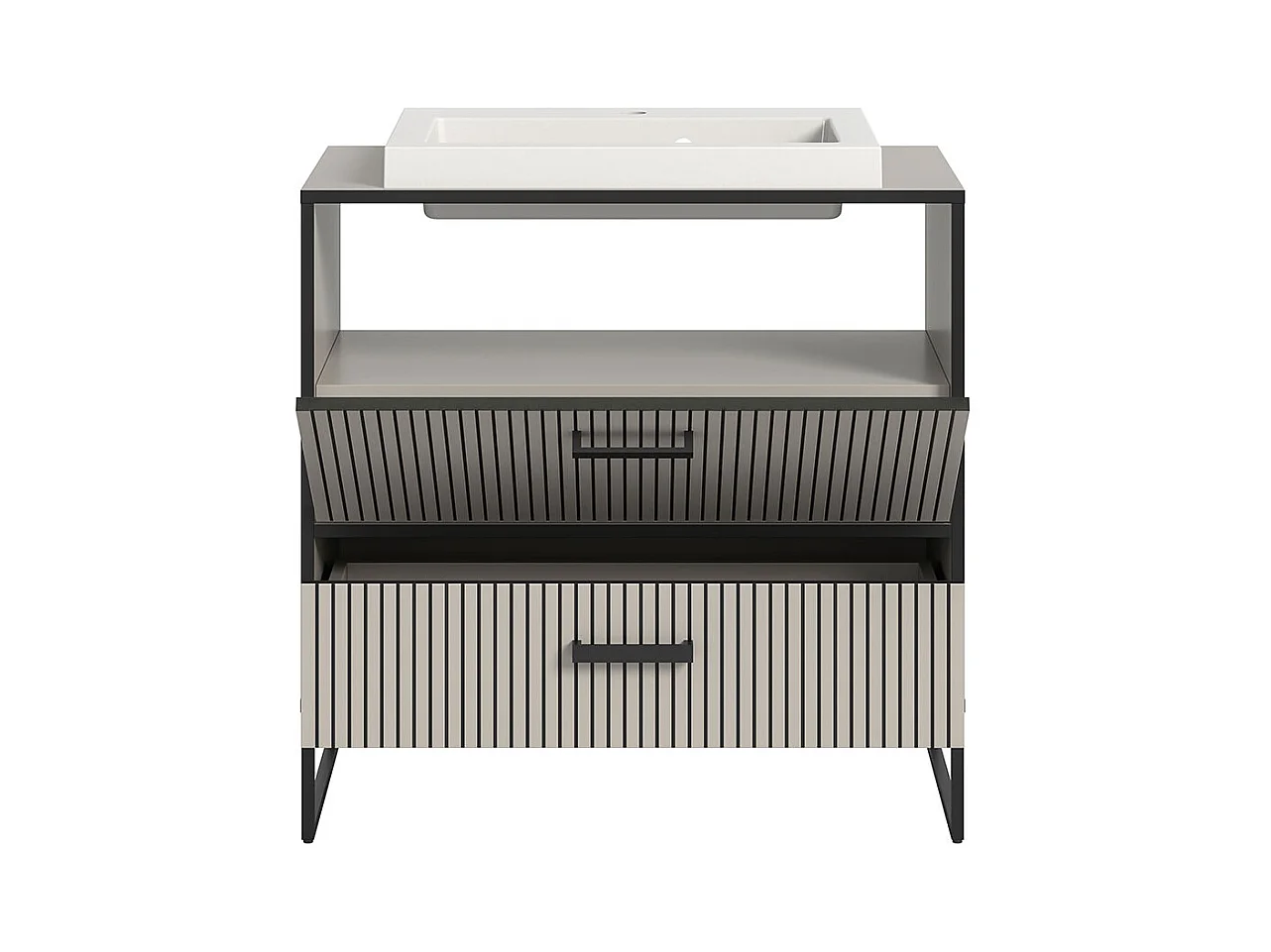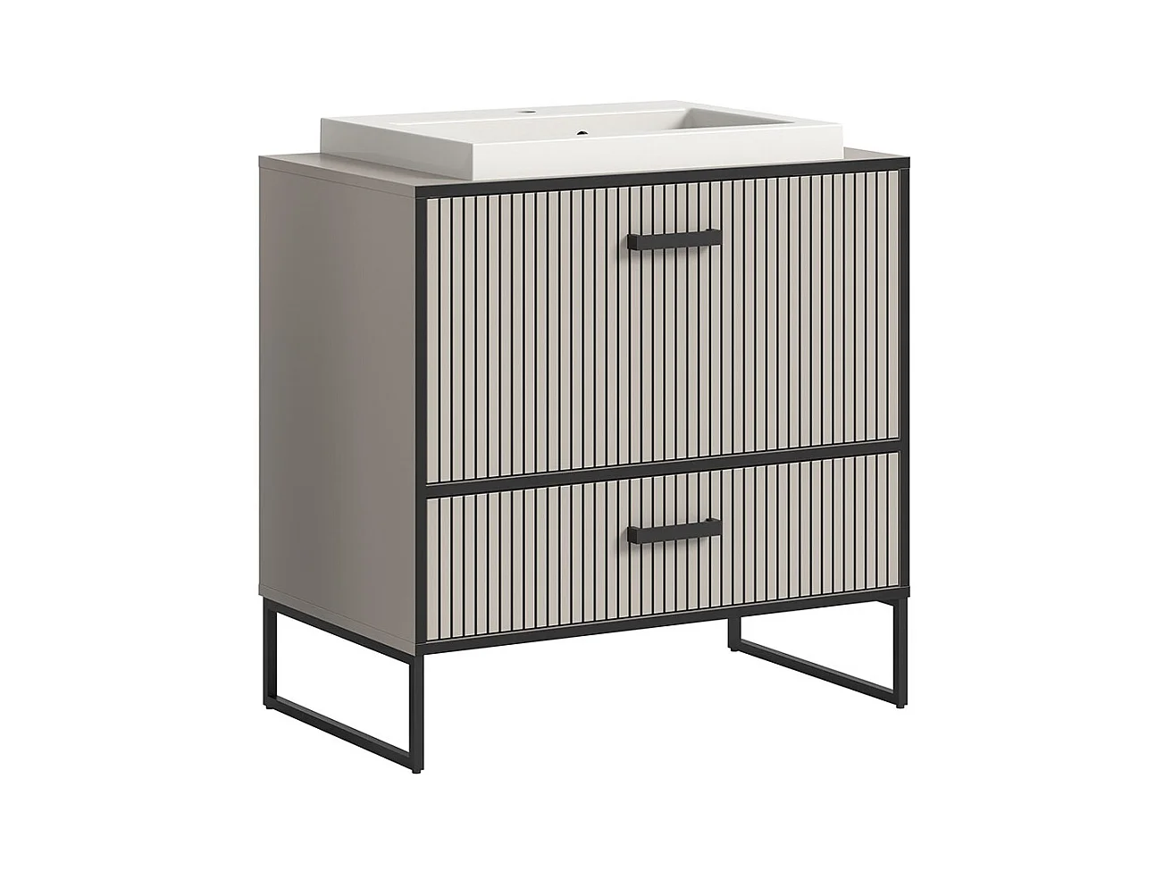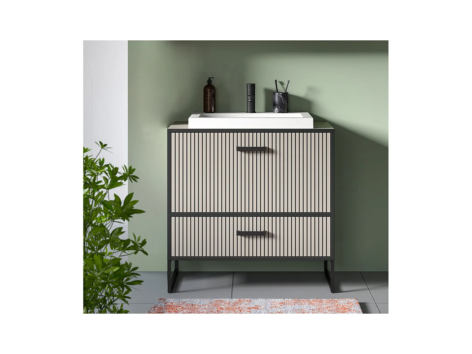 Bagno Waschbeckenunterschrank inkl. Waschbecken 1 Schublade 1 Klapptür hellgrau, cremefarben.