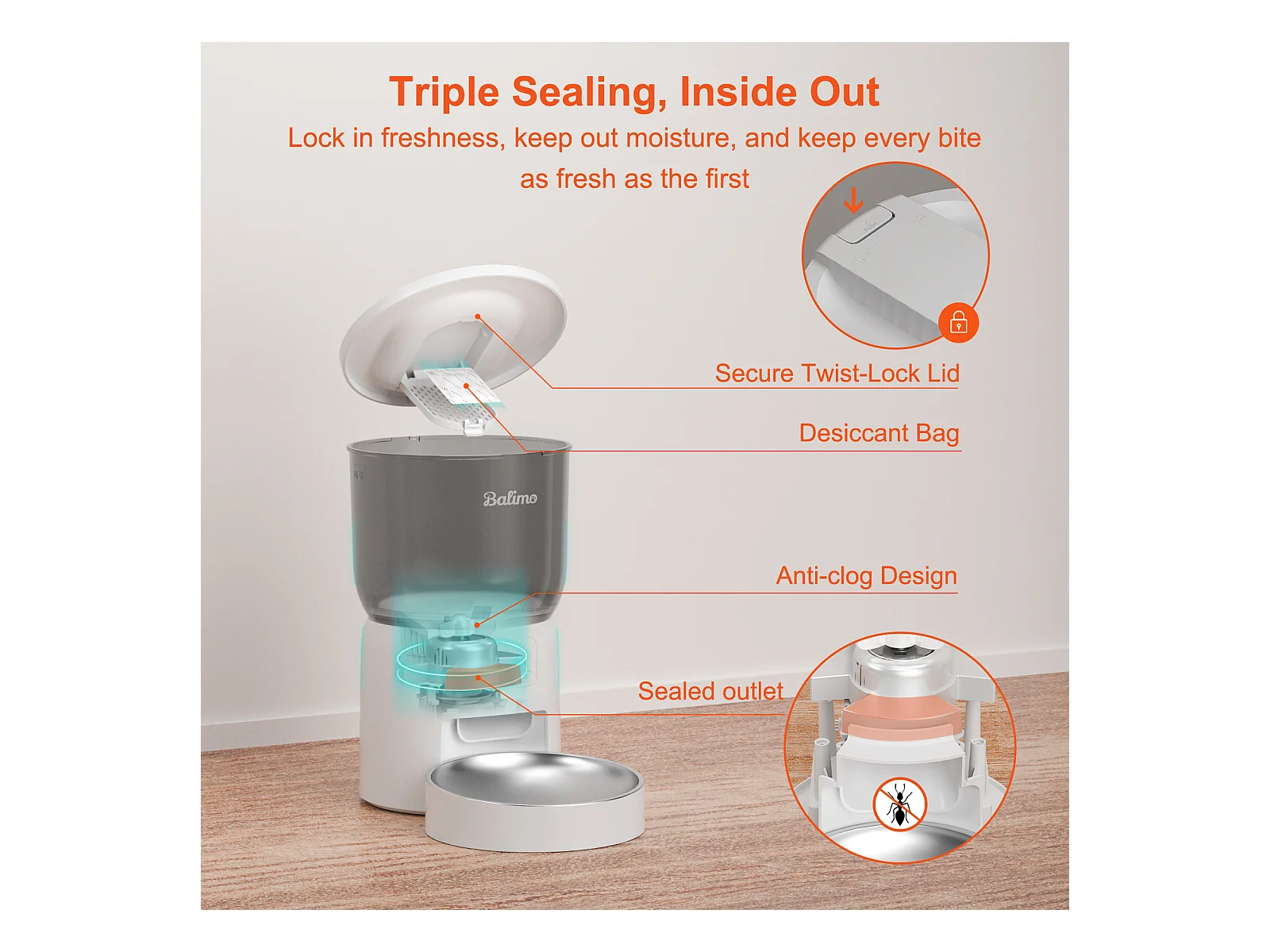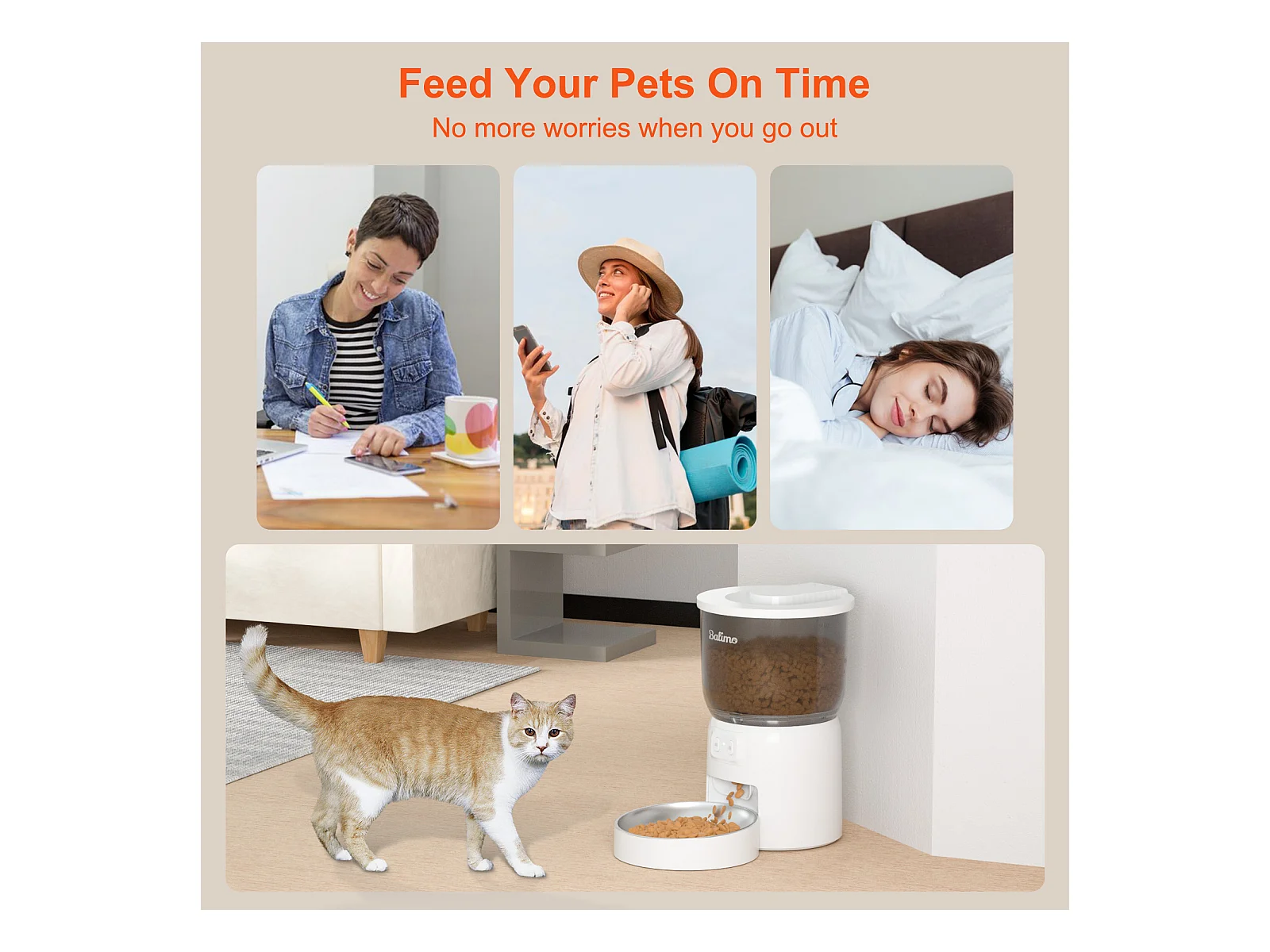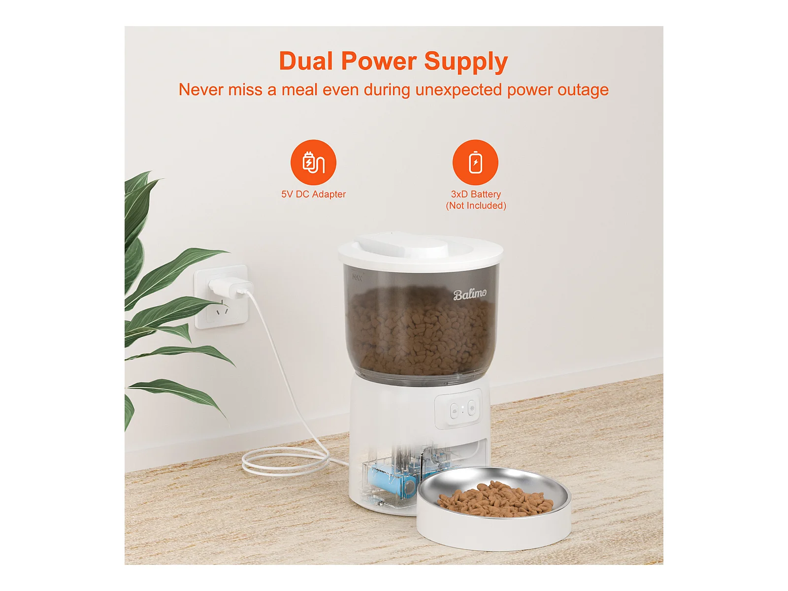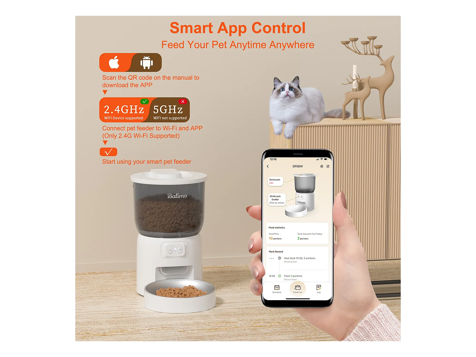 Balimo 3L Automatischer Katzenfutterspender, 2,4G WiFi, 1-10 Mahlzeiten pro Tag, weiß