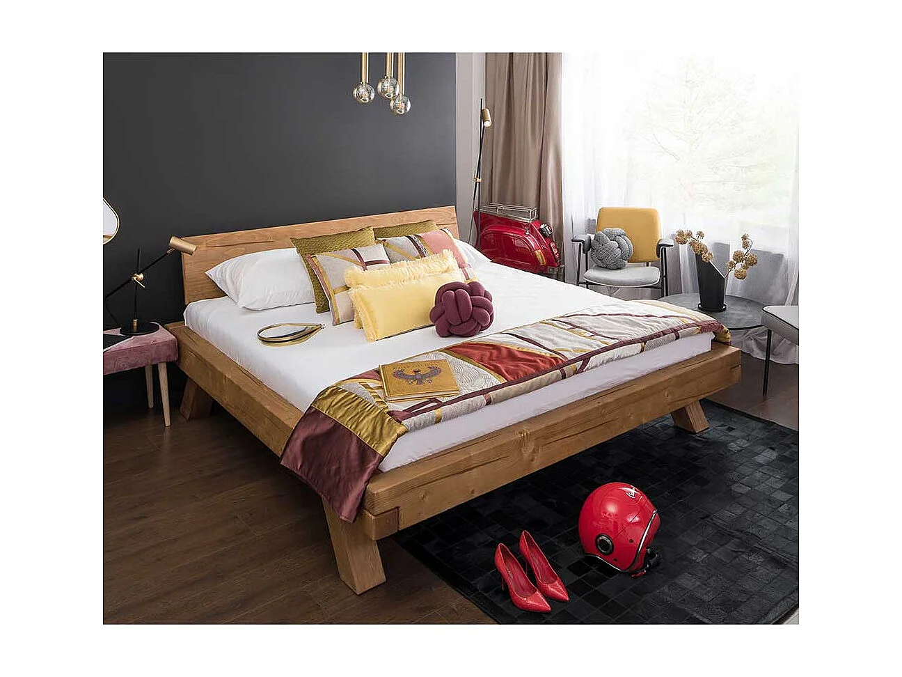 Balken Holzbett aus Fichte Massivholz rustikalen Landhausstil