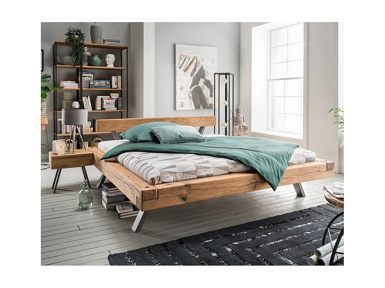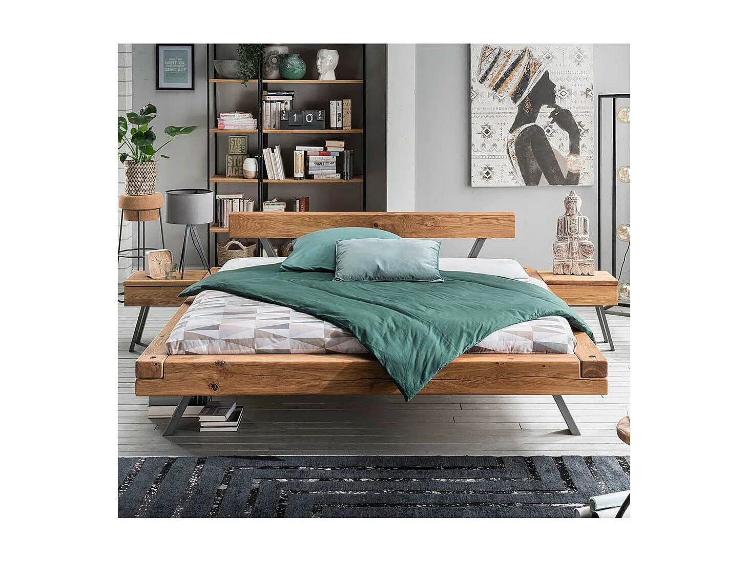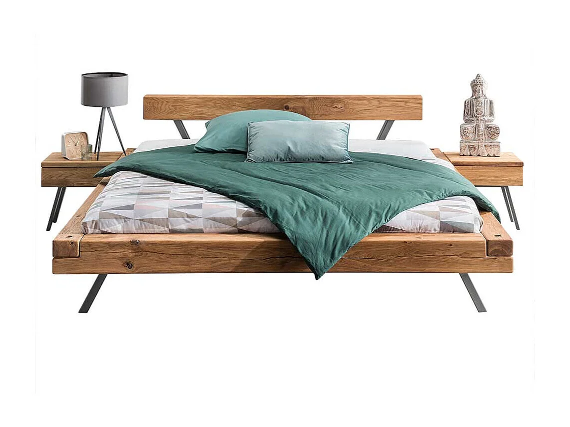 Balken Massivholzbett aus Wildeiche geölt Nachtkommoden (dreiteilig)