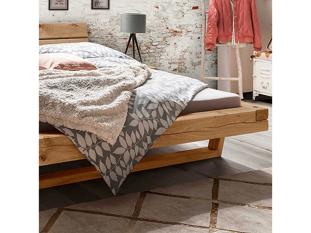Balken Massivholzbett aus Wildeiche geölt Schwebesockel