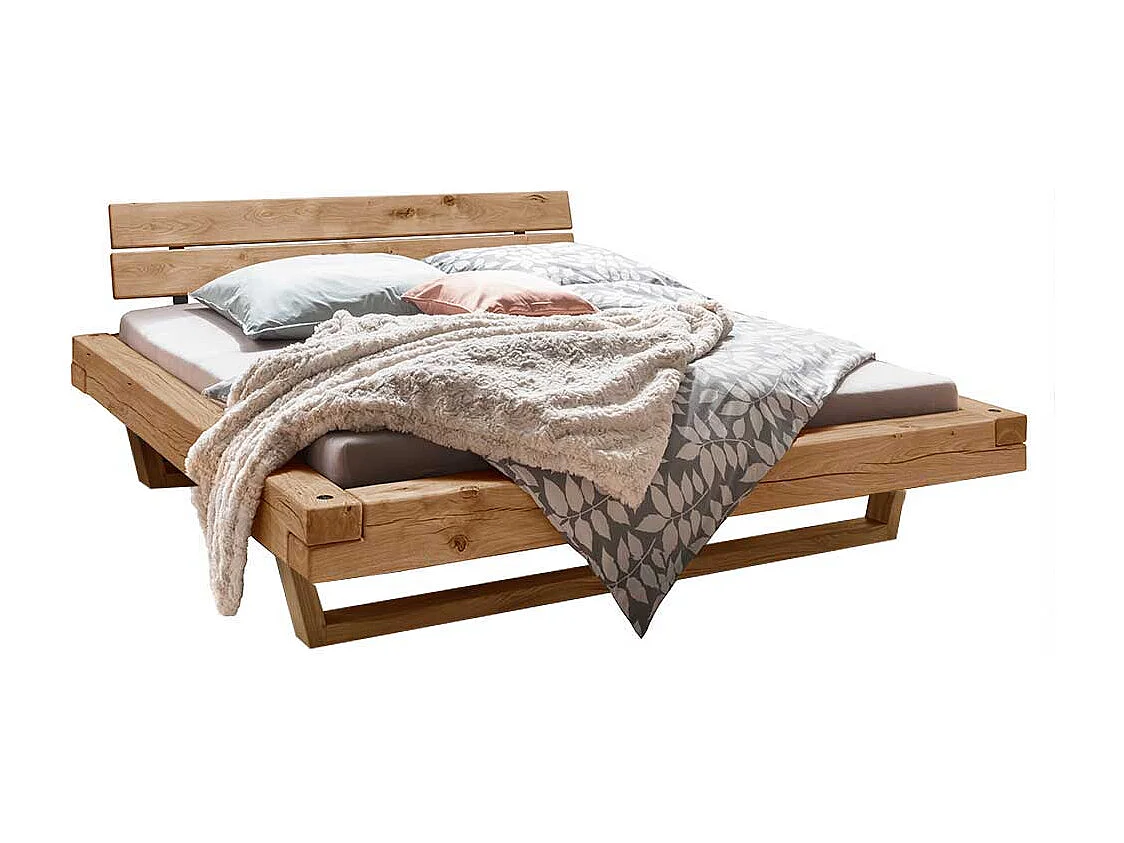 Balken Massivholzbett aus Wildeiche geölt Schwebesockel