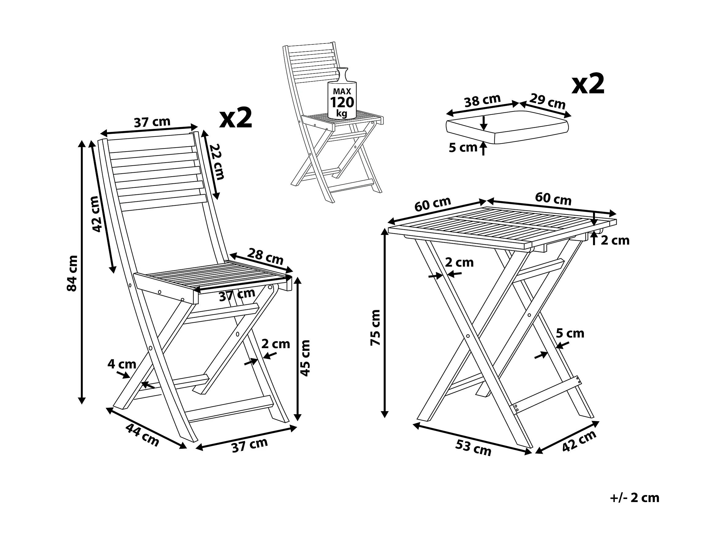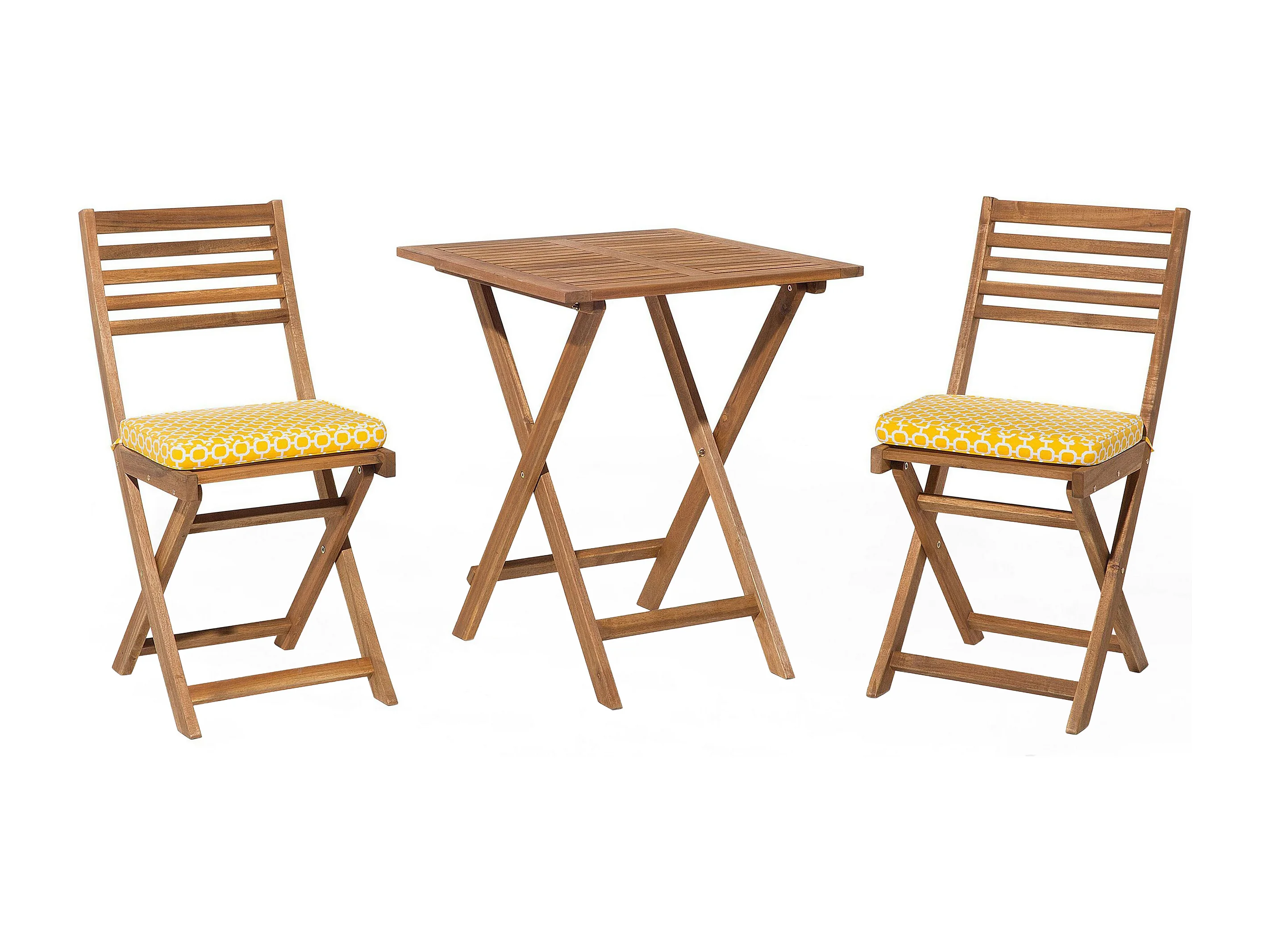 Balkonset 2 Stühle 1 Tisch Akazienholz hellbraun mit Auflagen gelb Fiji