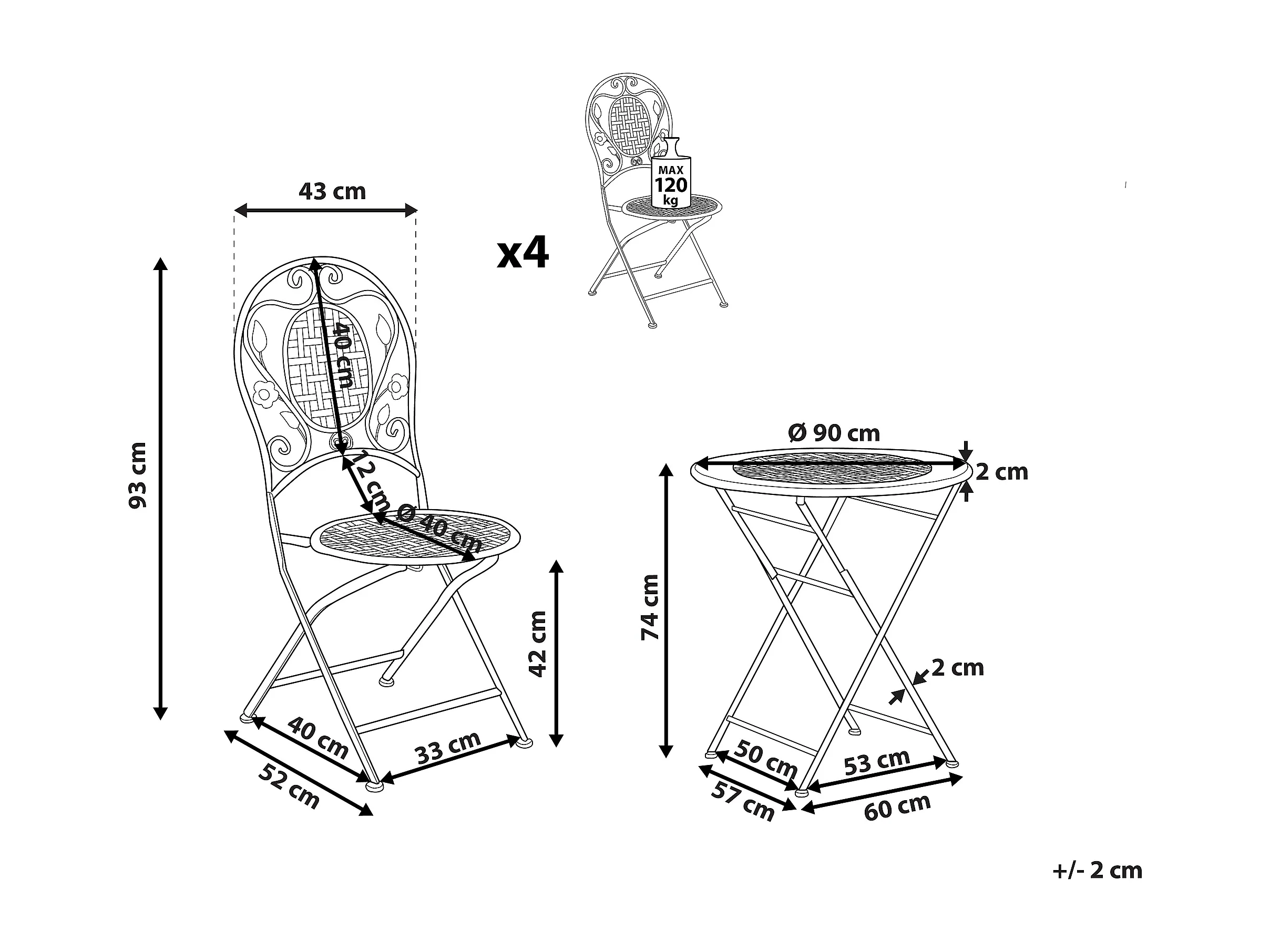 Garten Bistro Set Balkon Terasse 4er cremeweiß zusammenklappbar Bivio