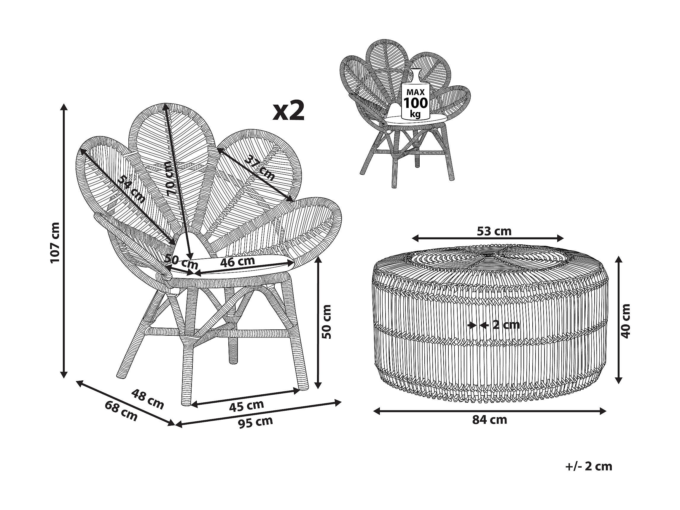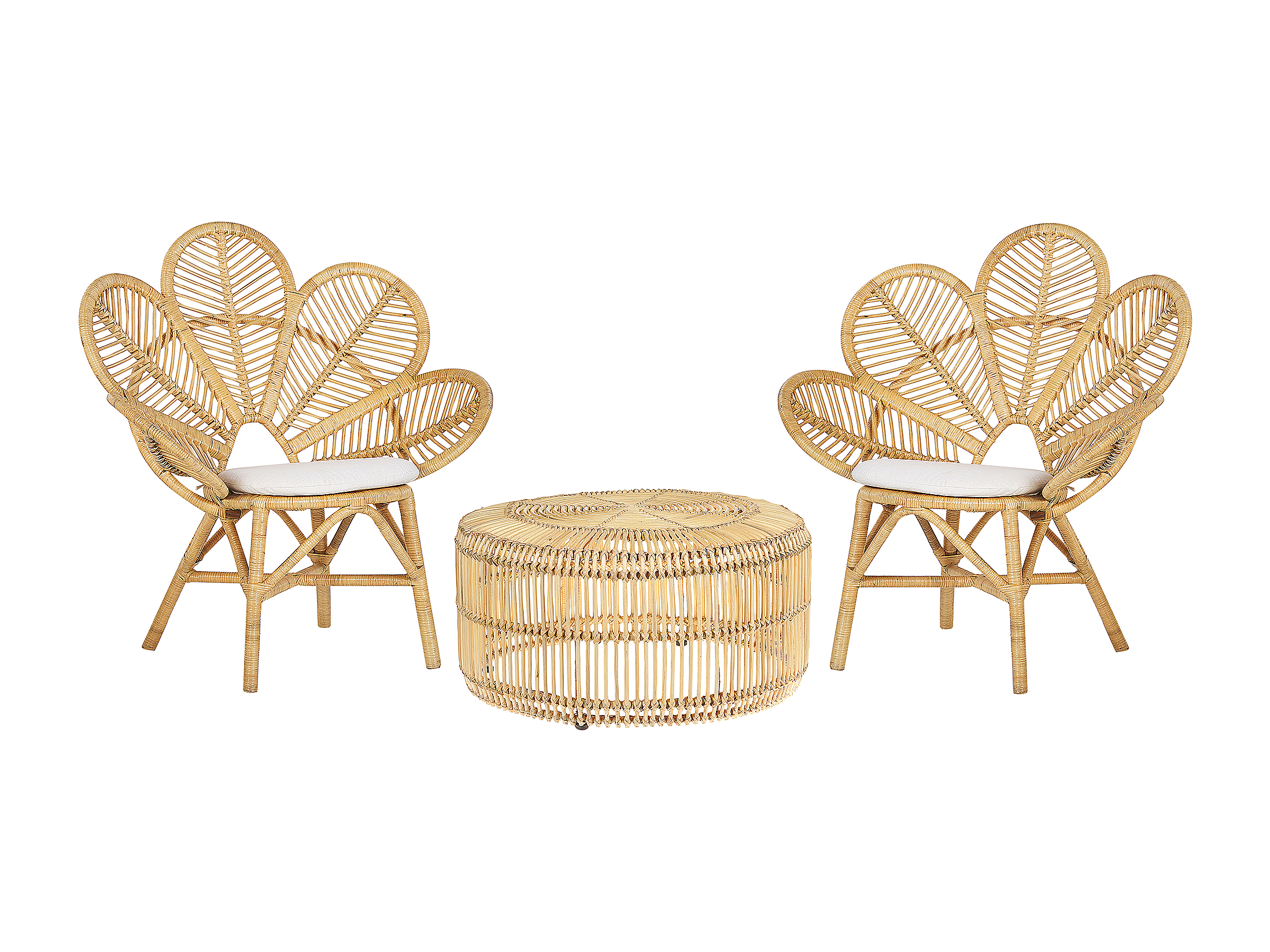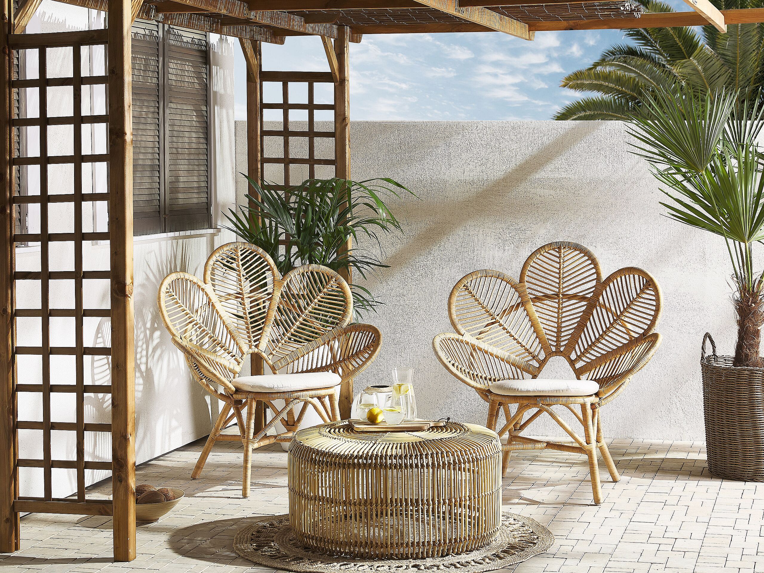 Balkonset 2 Stühle mit 1 Tisch Rattan heller Holzfarbton Florentine / Limni