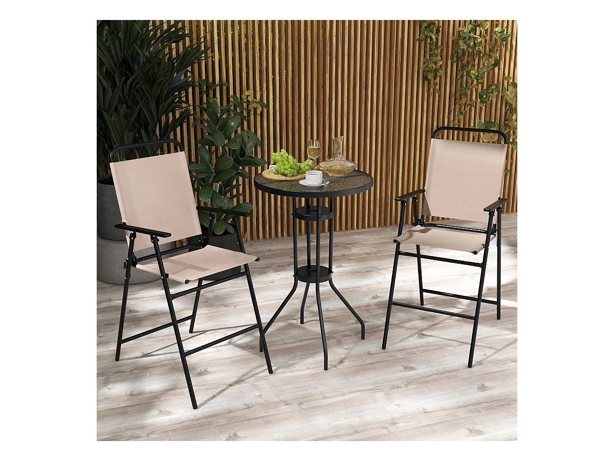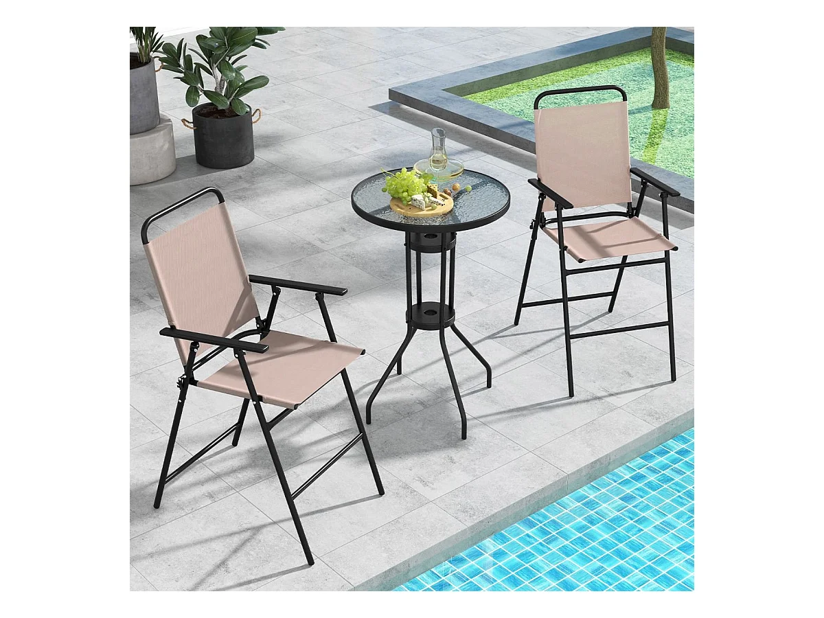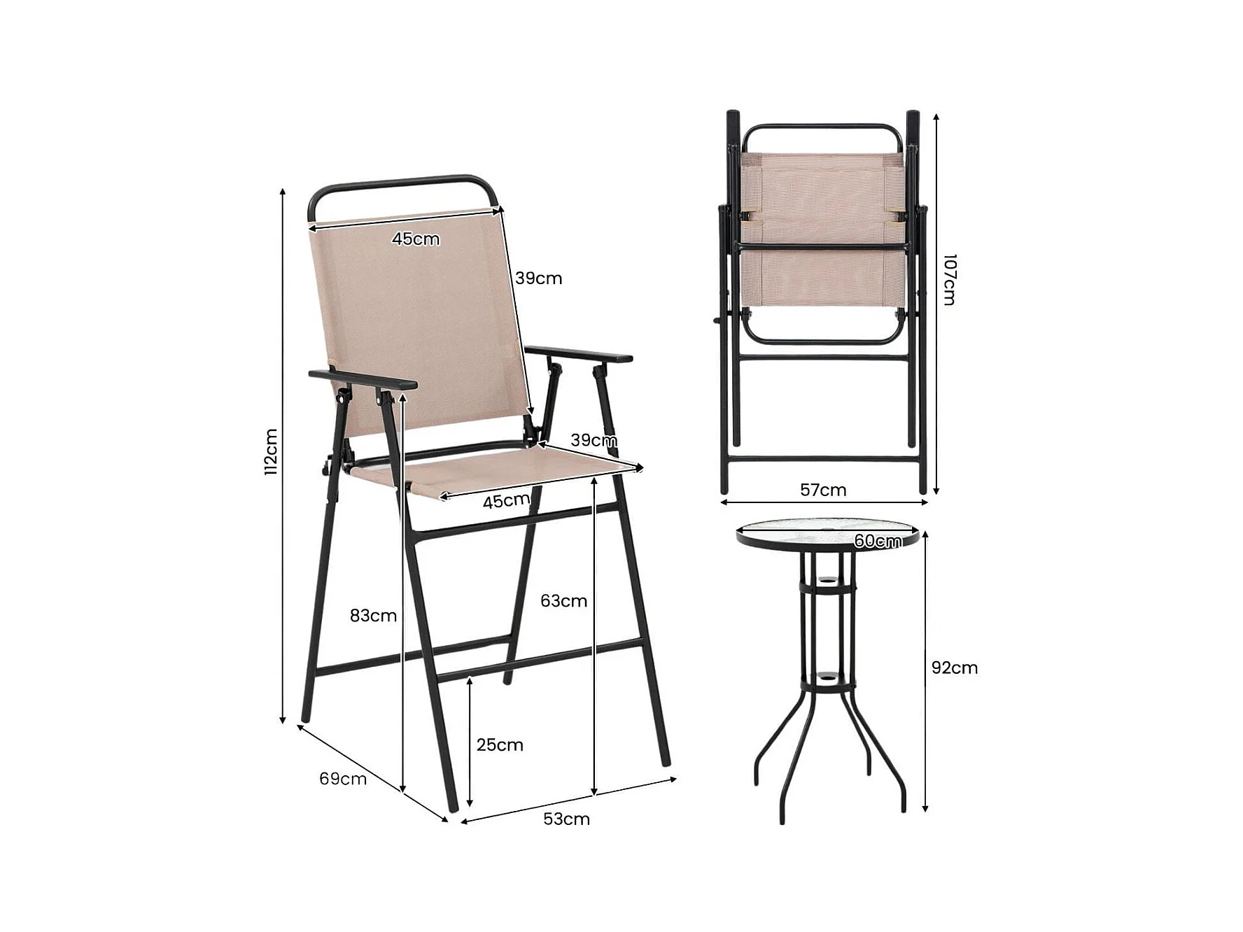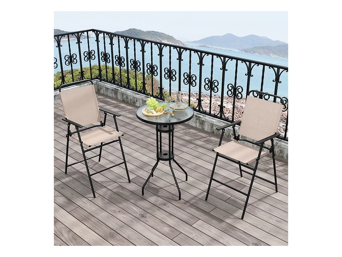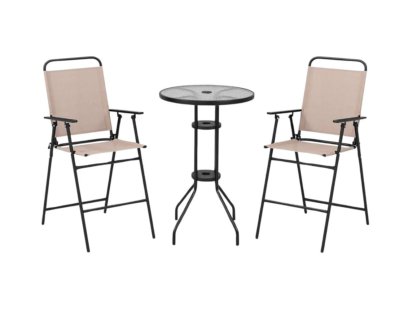 3 tlg. Outdoor-Bistro-Set Terrassen-Bartisch mit 2 Klappbaren Stühlen & Sonnenschirmloch Beige
