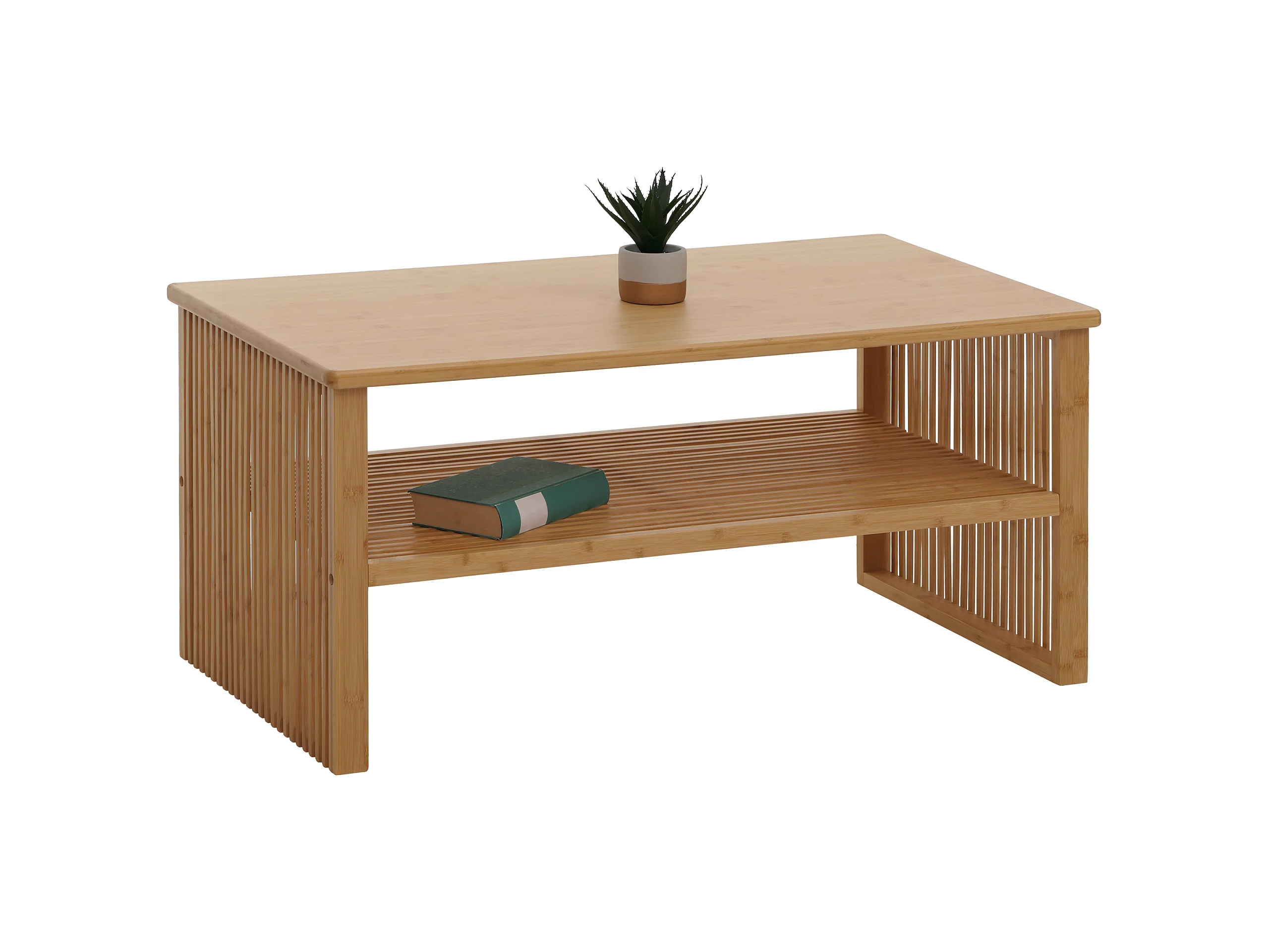 Bambus Couchtisch MCW-N80, Wohnzimmertisch Tisch Sofatisch Beistelltisch, Ablagefach FSC®-zertifiziert 46x97x55cm