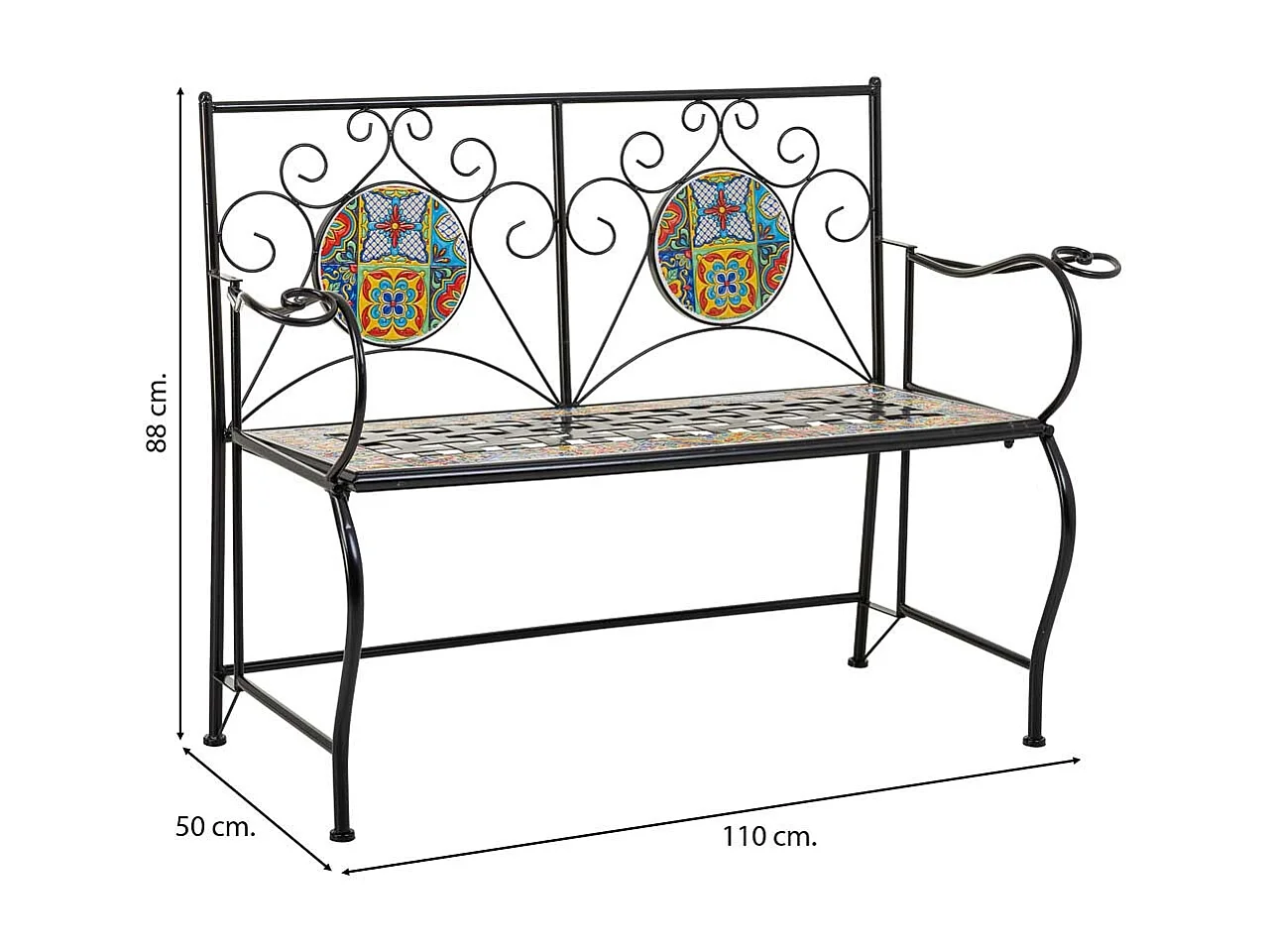 Bank aus schwarzem Mosaik und Schmiedeeisen, 110x50x88h cm