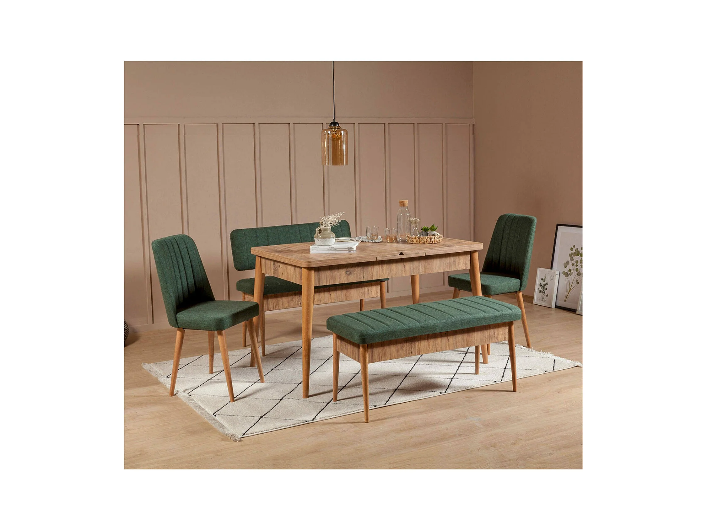 Bank Djansru, Mehrzweckbank, Gastplatz, Balkonbank mit mehreren Positionen, 110x40 h85 cm, Eiche und Grün