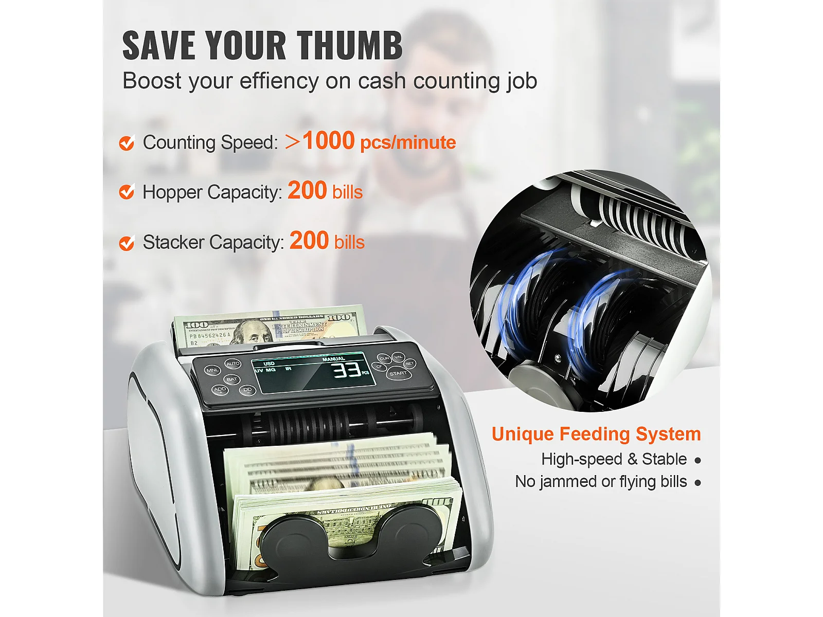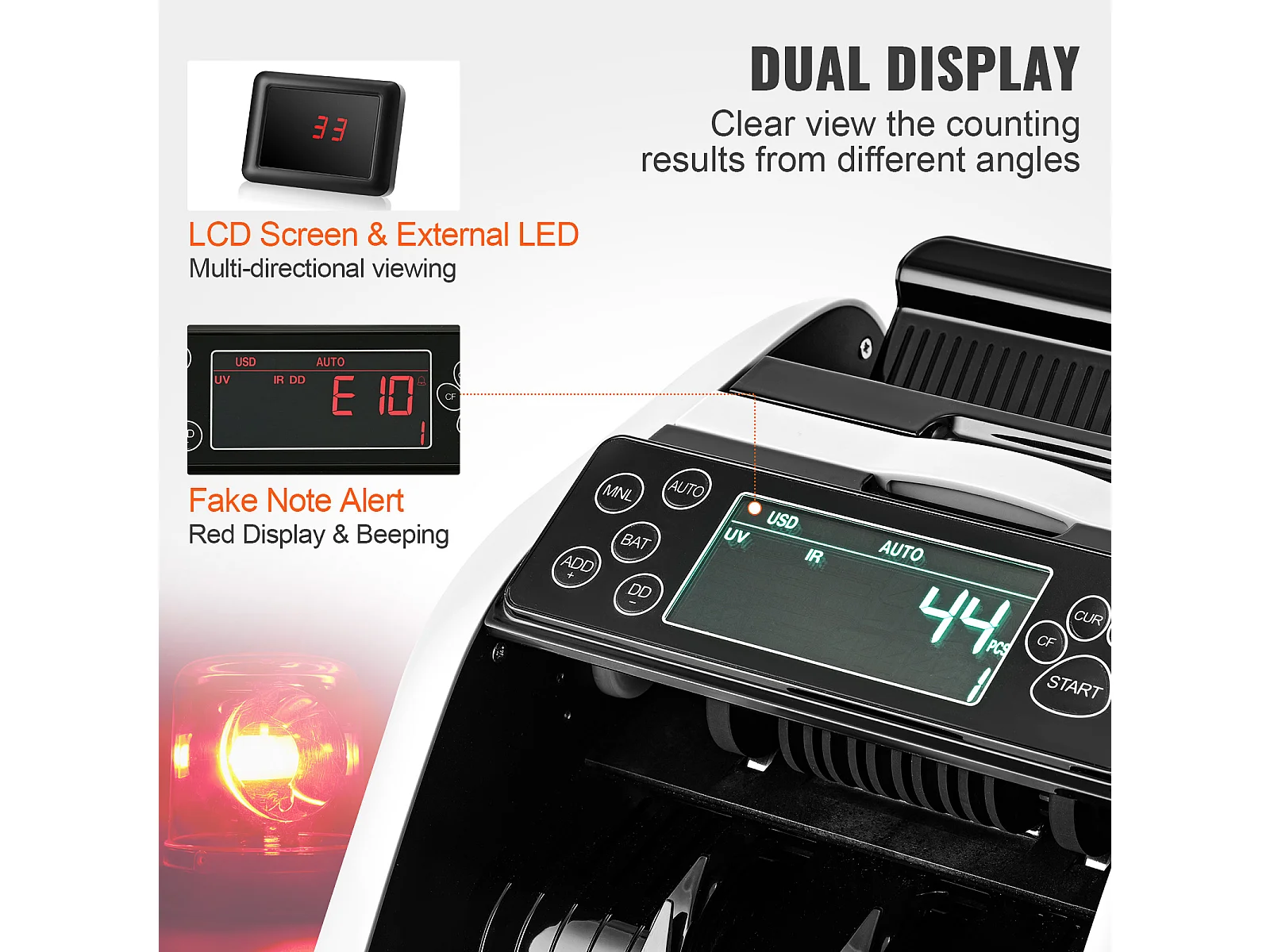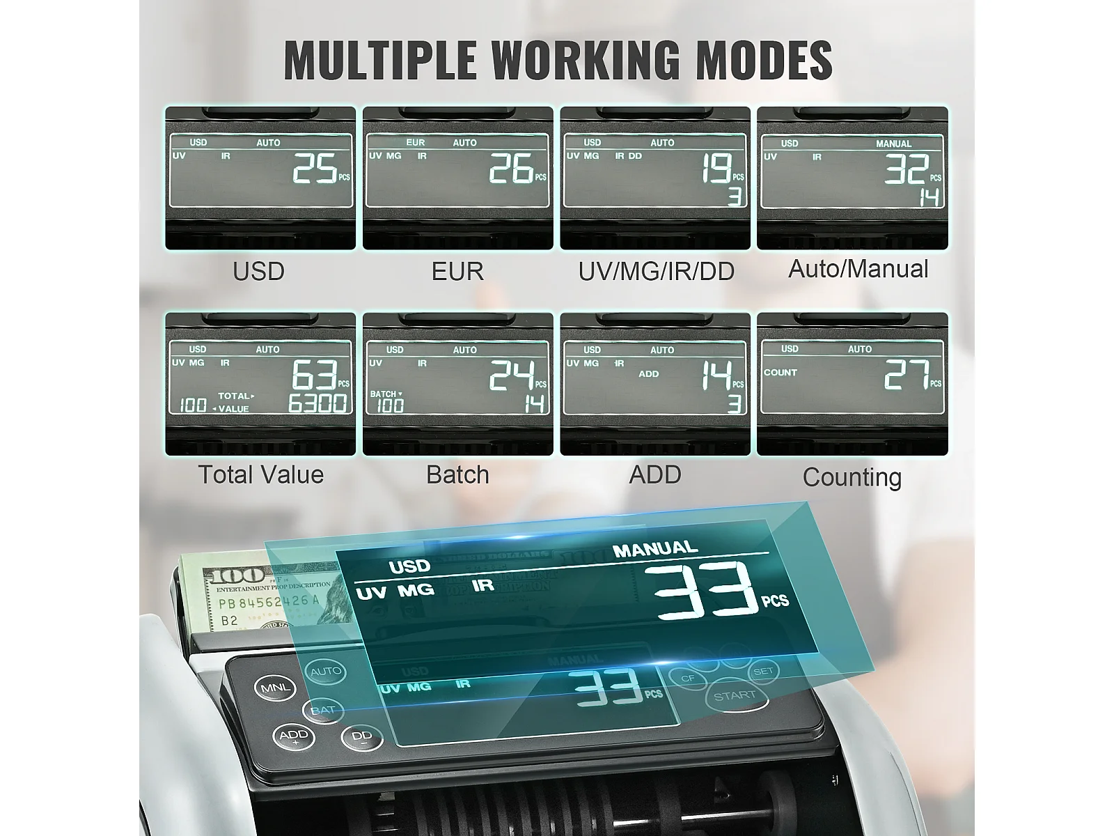 Banknotenzähler SucceBuy , Banknotenzähler mit UV-, MG-, IR- und DD-Erkennung, Zählung von USD- und EUR-Banknoten