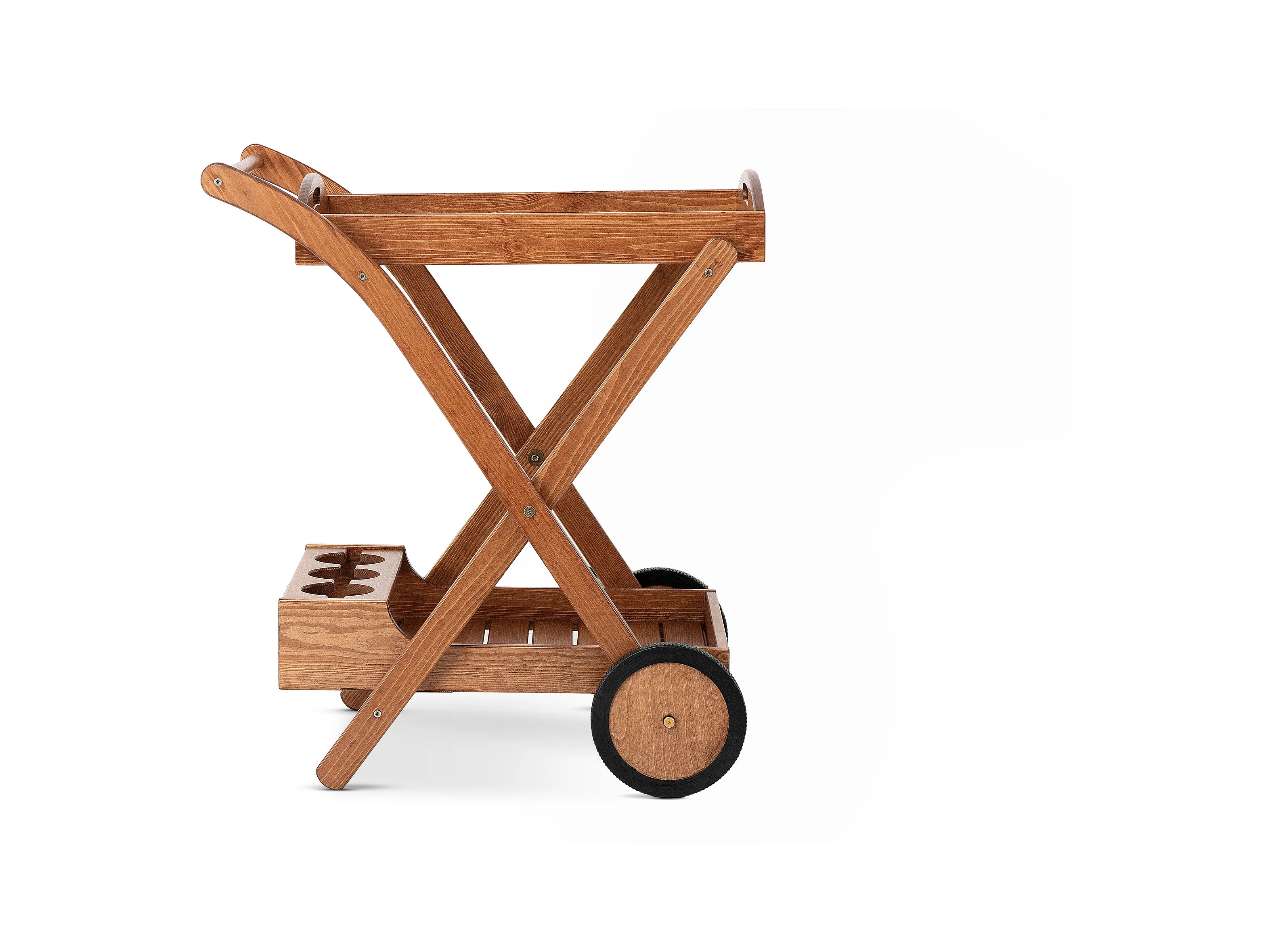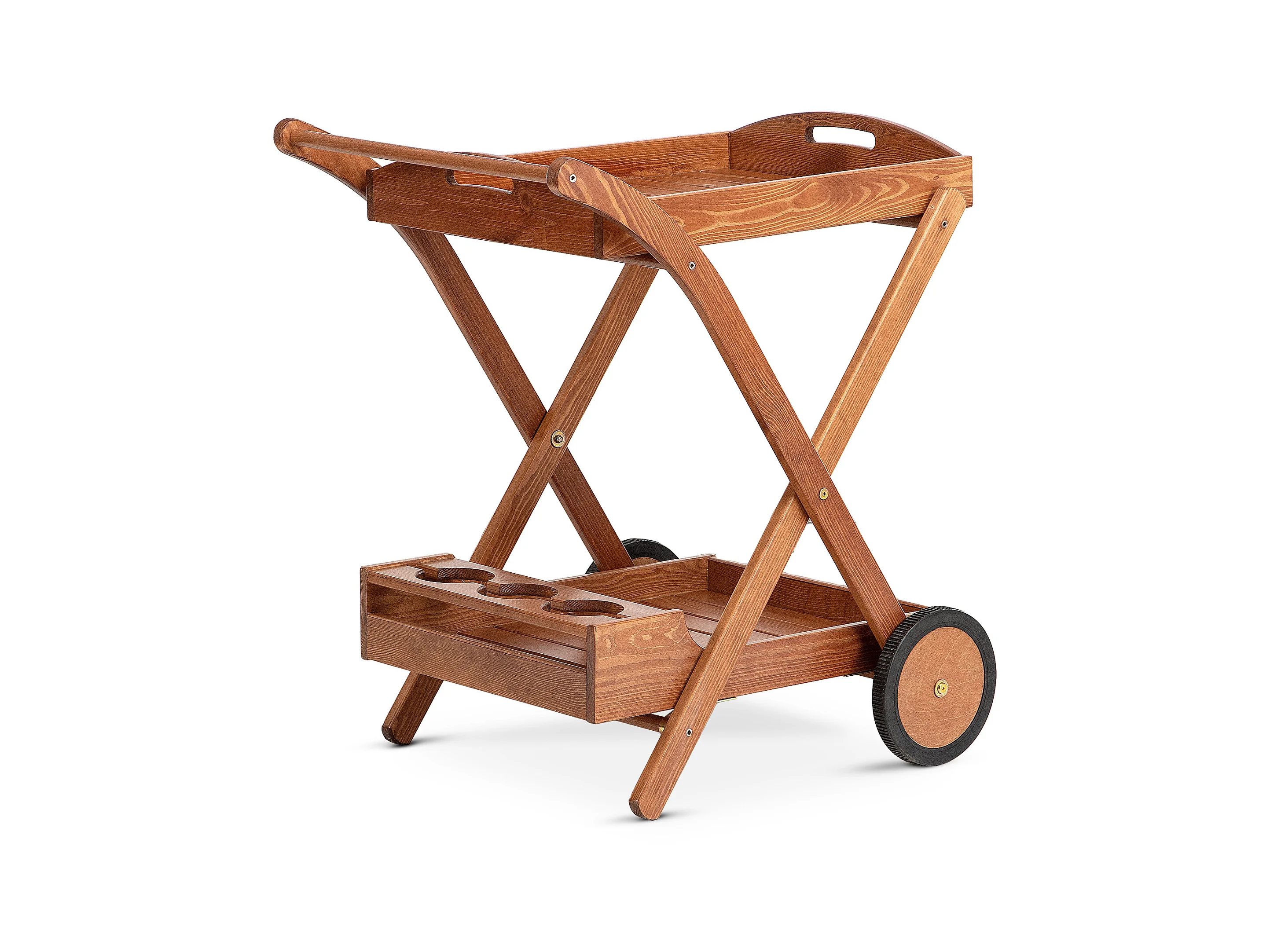 Bar auf Rädern aus Kiefernholz - Hergestellt in Europa - FSC-zertifiziert - Handgefertigt - braun - ARVICOLA