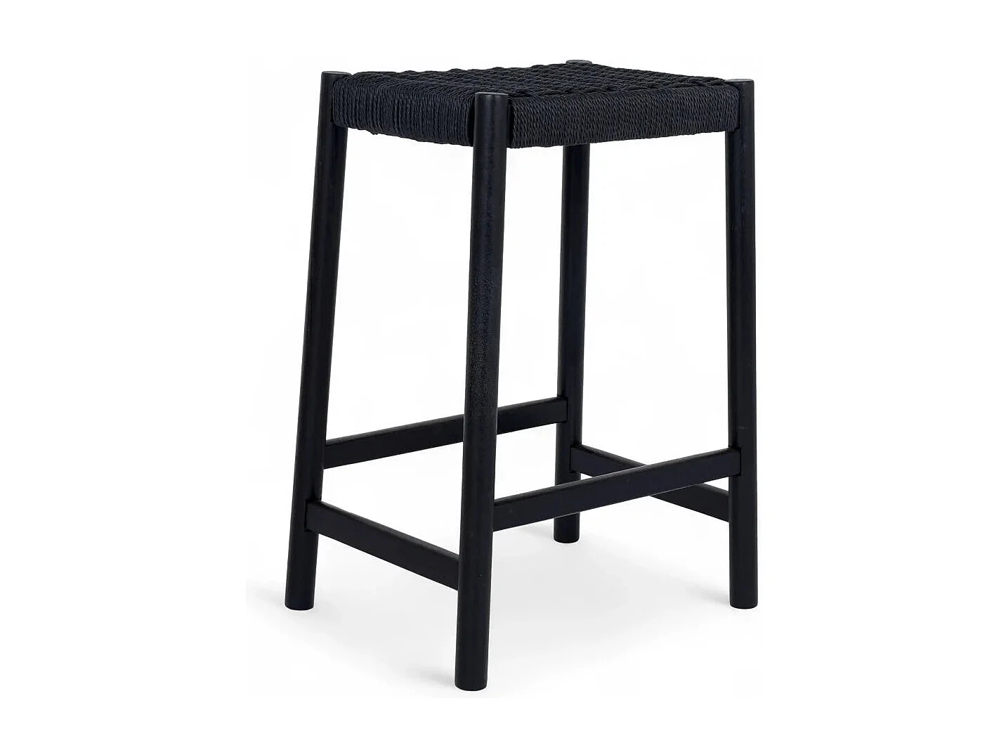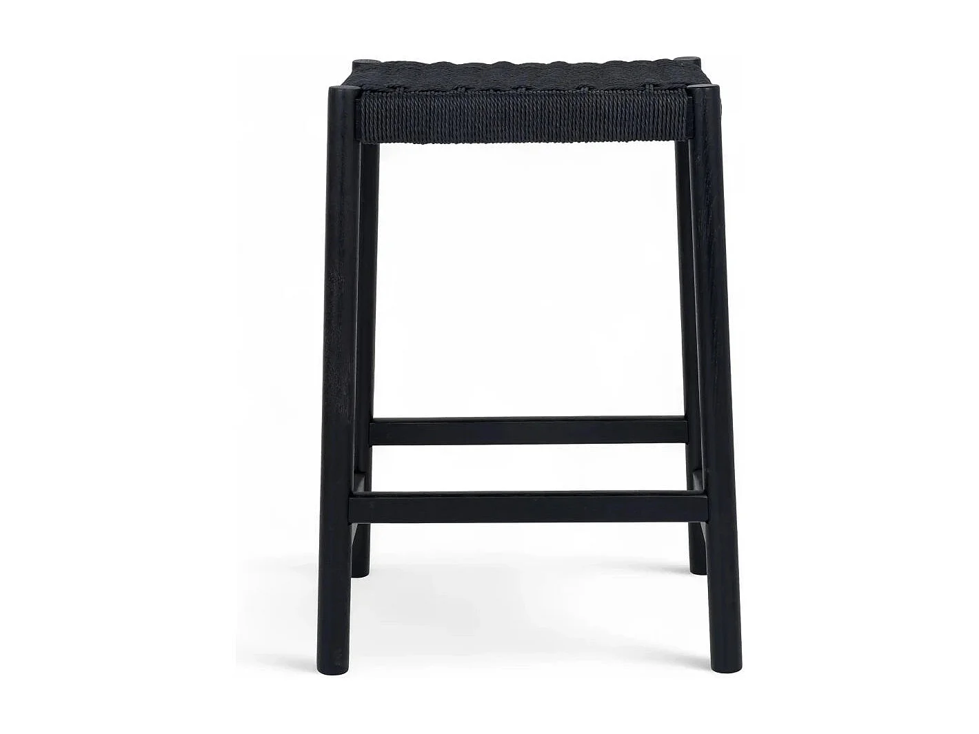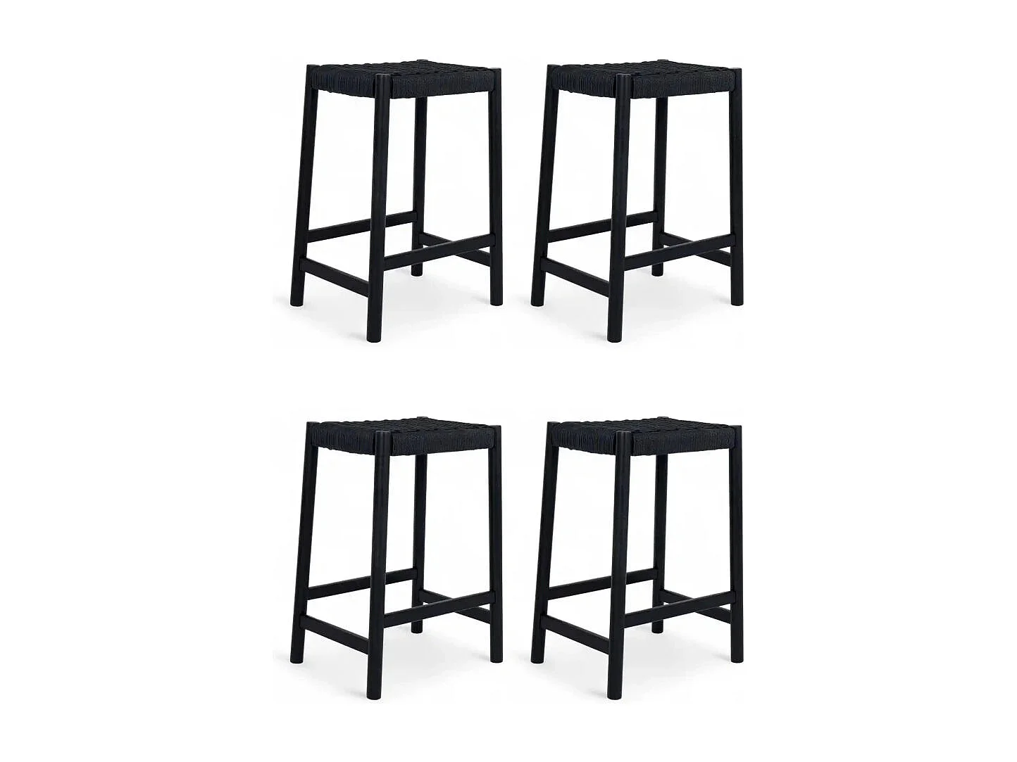 Barhocker 4er Set Ida - Papiergarn & Massives Eichenholz - Schwarz