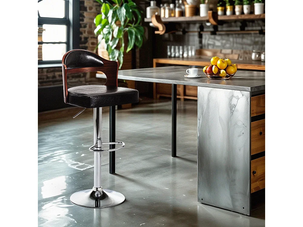 Barhocker hoch drehbar aus Holz und schwarzem Kunstleder Soru