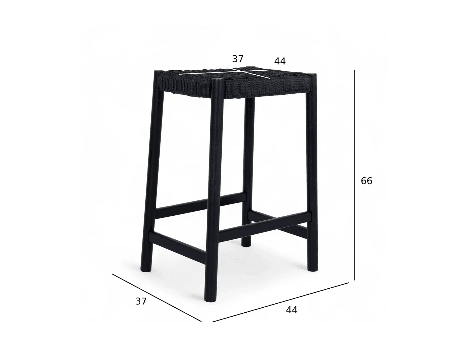 Barhocker Ida - Papiergarn & Massives Eichenholz - Schwarz