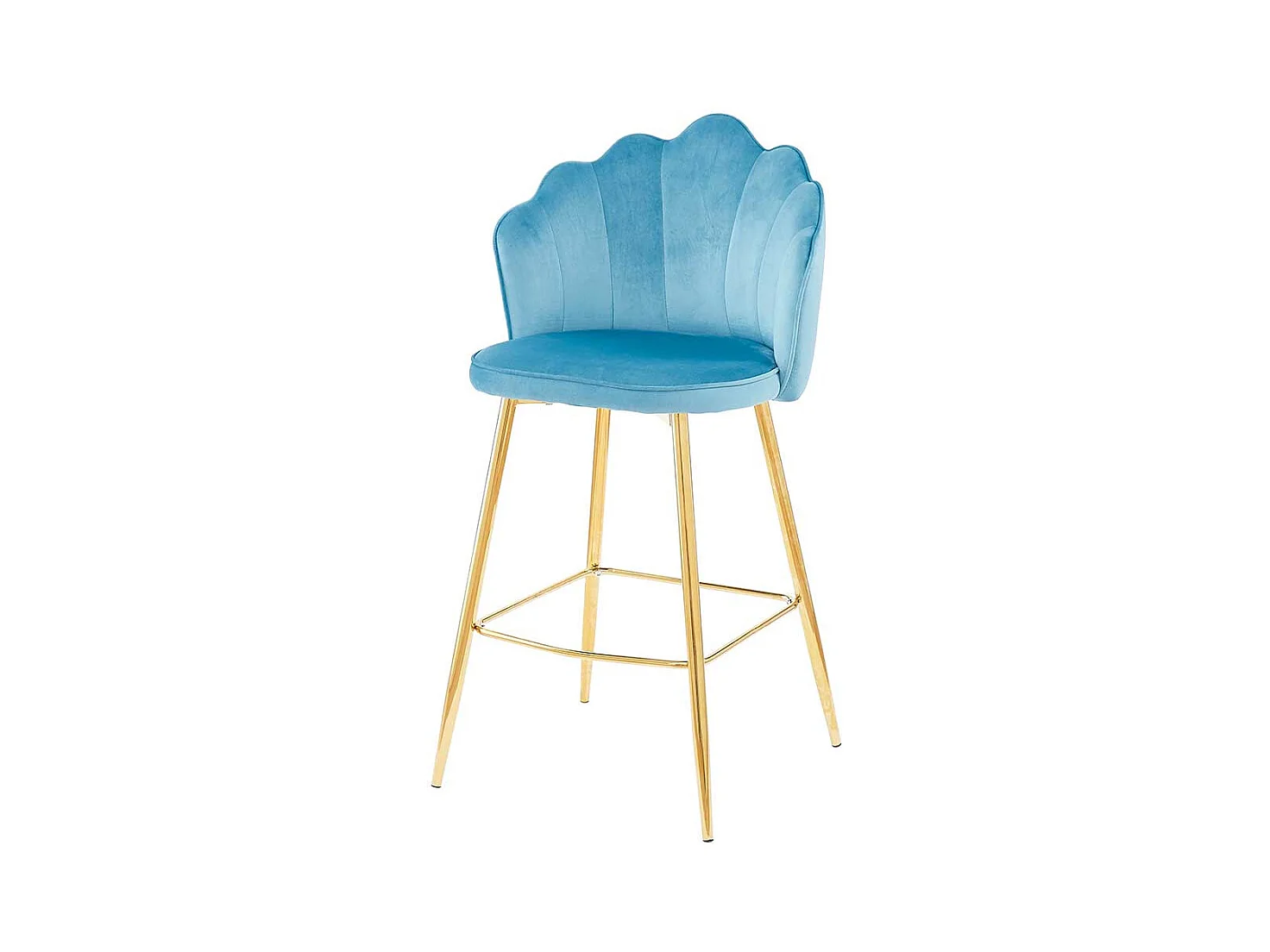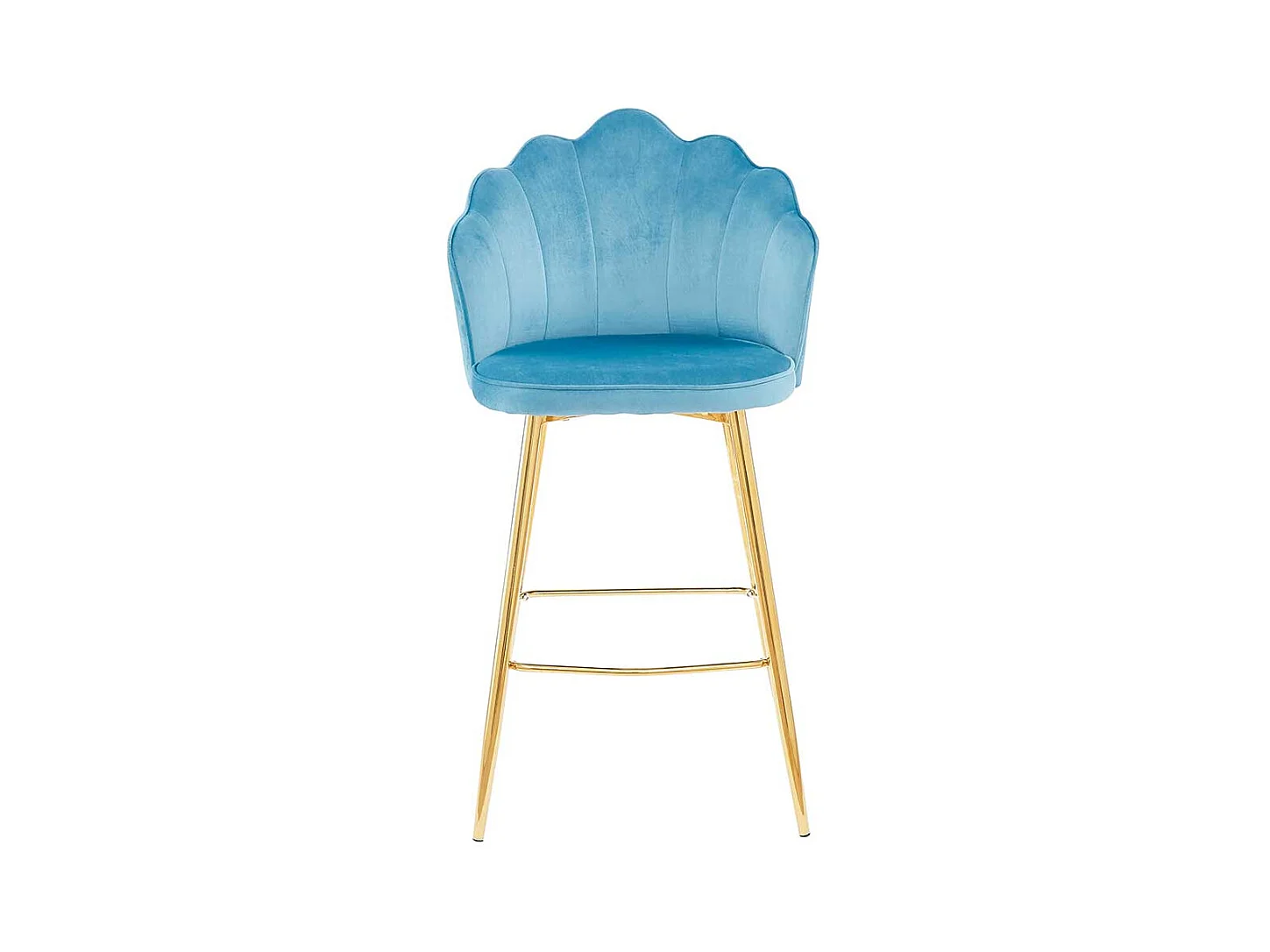 Barhocker Muschelform Bezug Samt Blau Vierfußgestell aus Metall (2er Set)