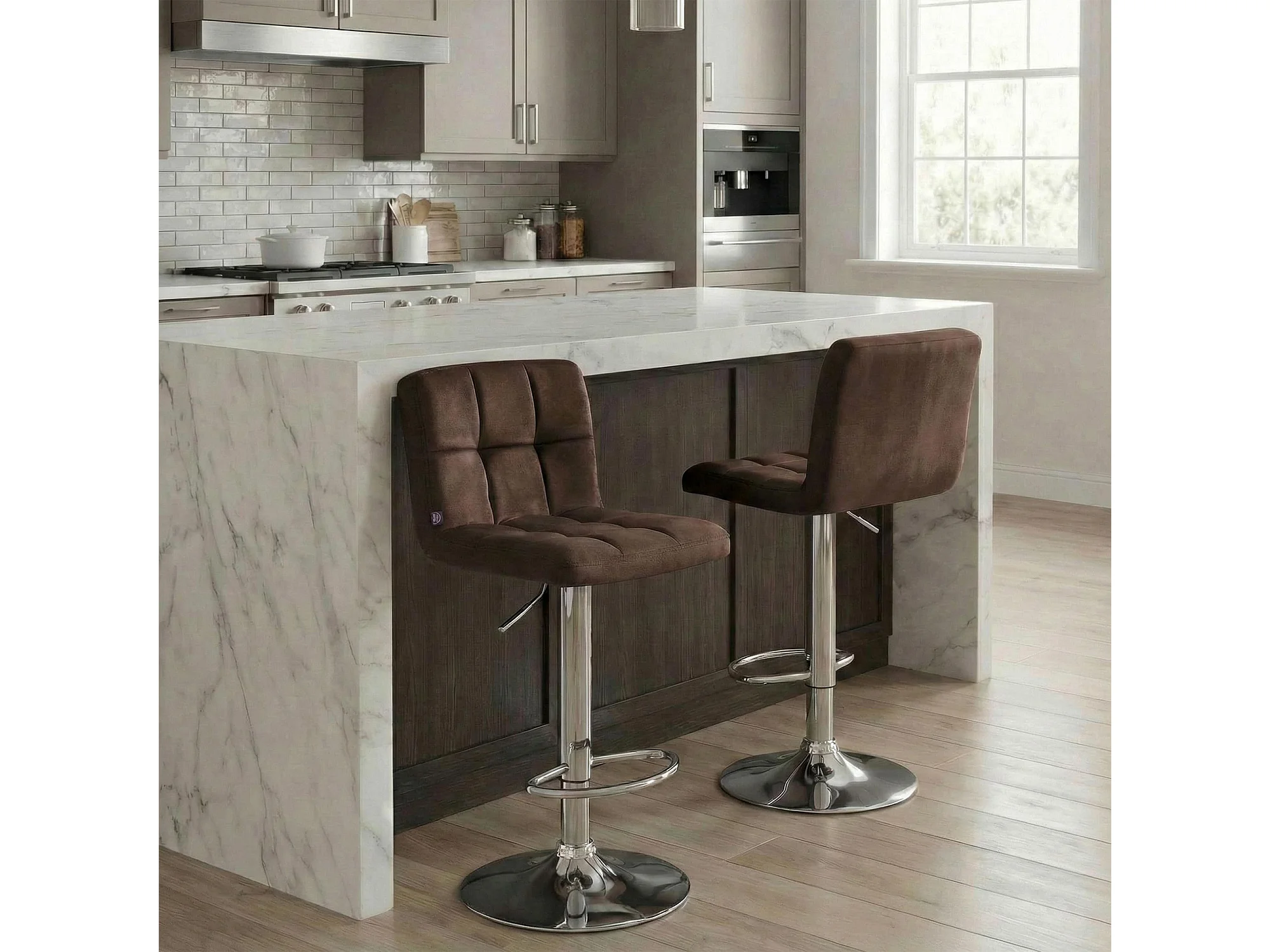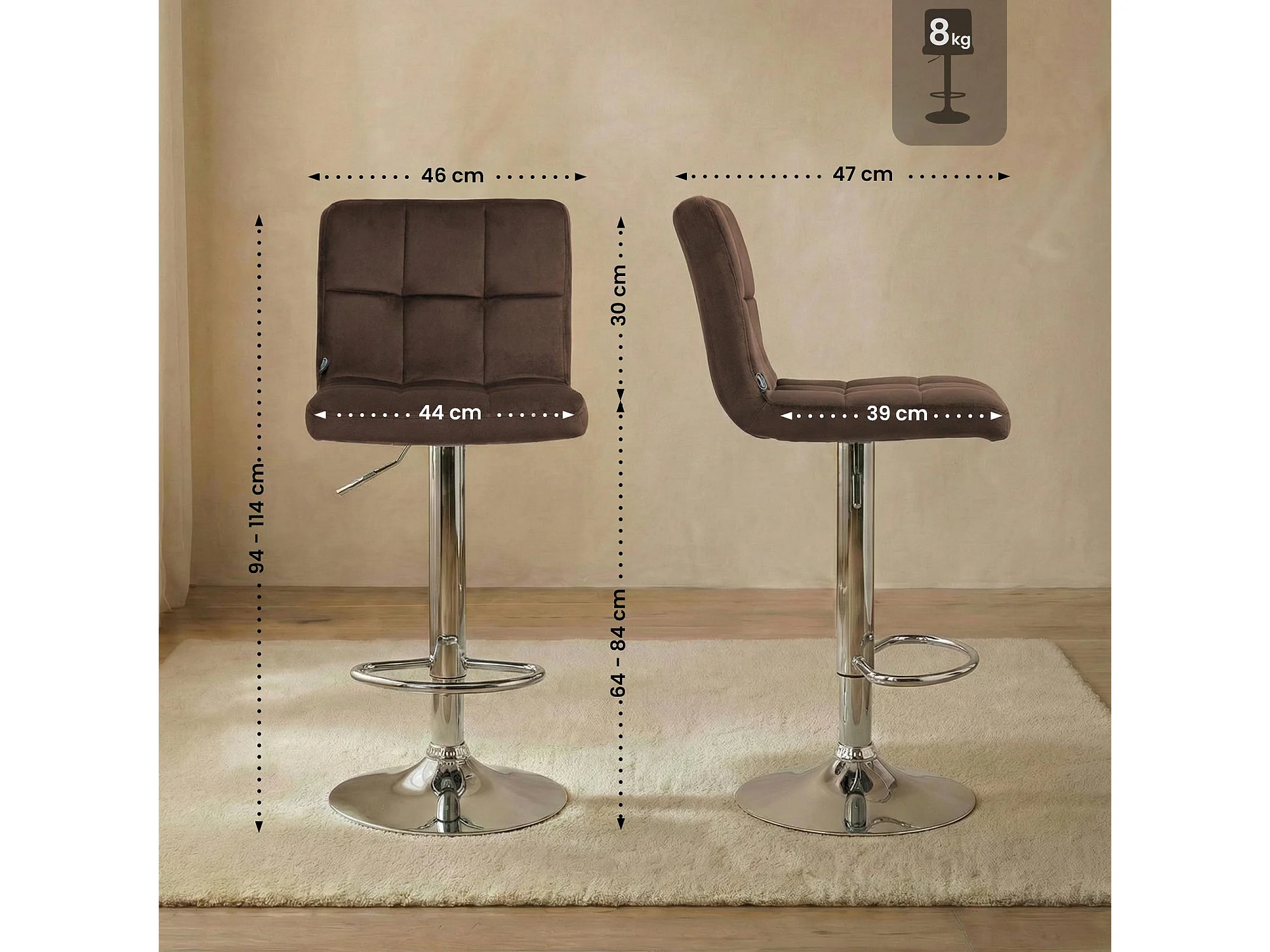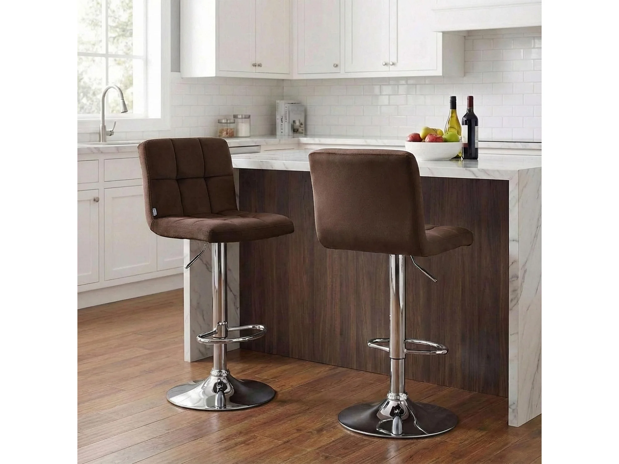Barhocker - Samt & chrom - braun - Peru