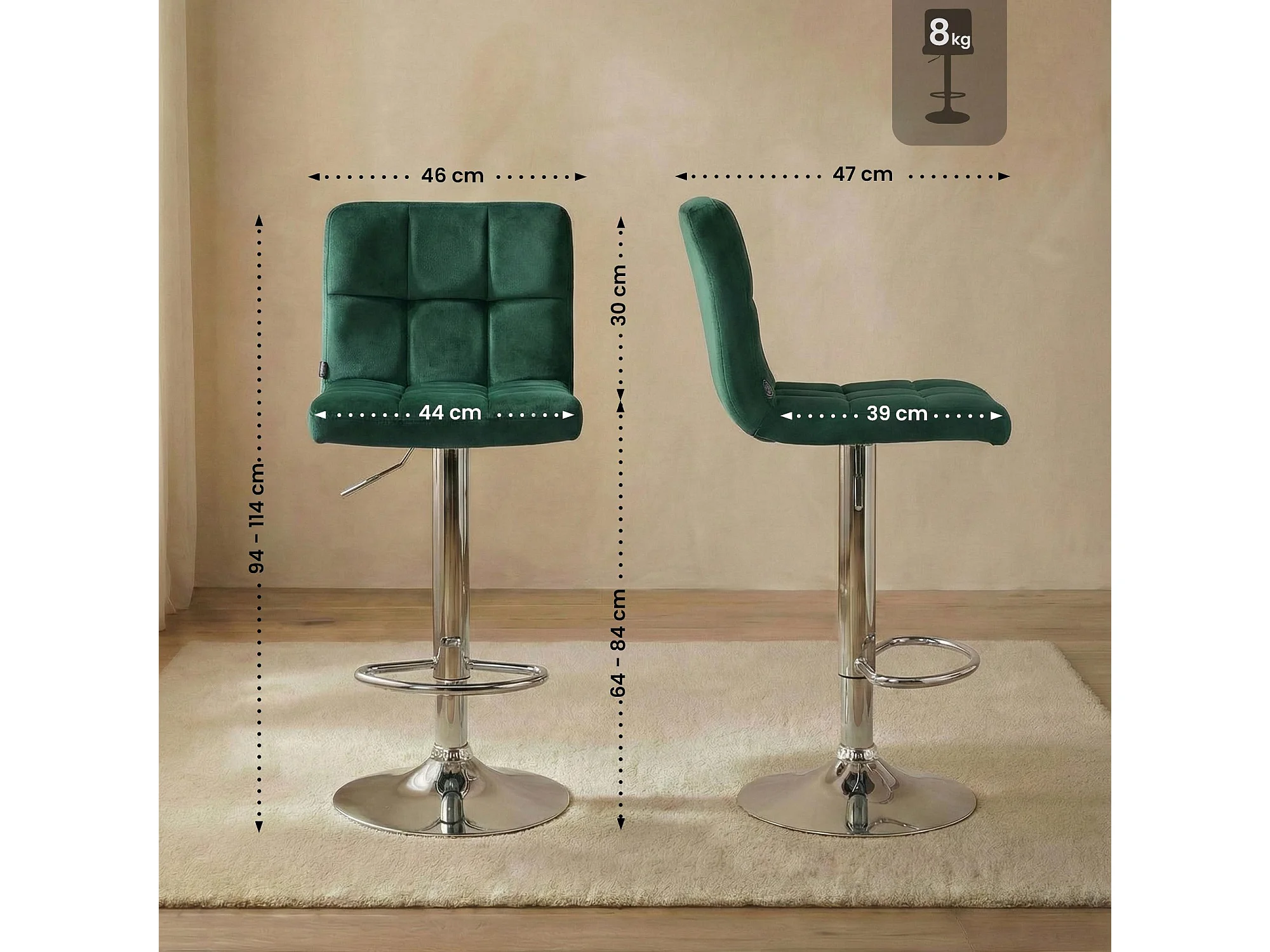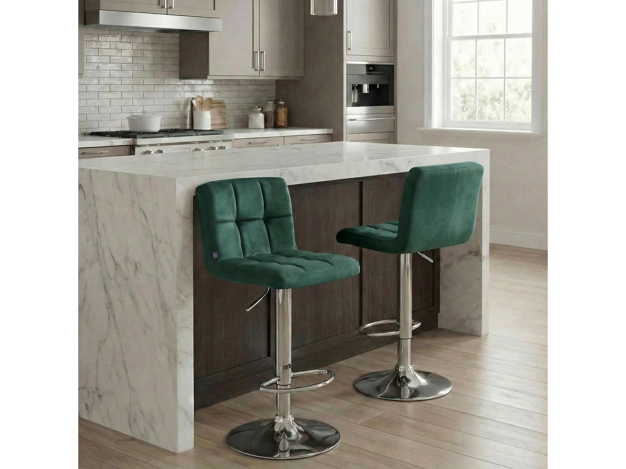 Barhocker - Samt & chrom - grün - Peru