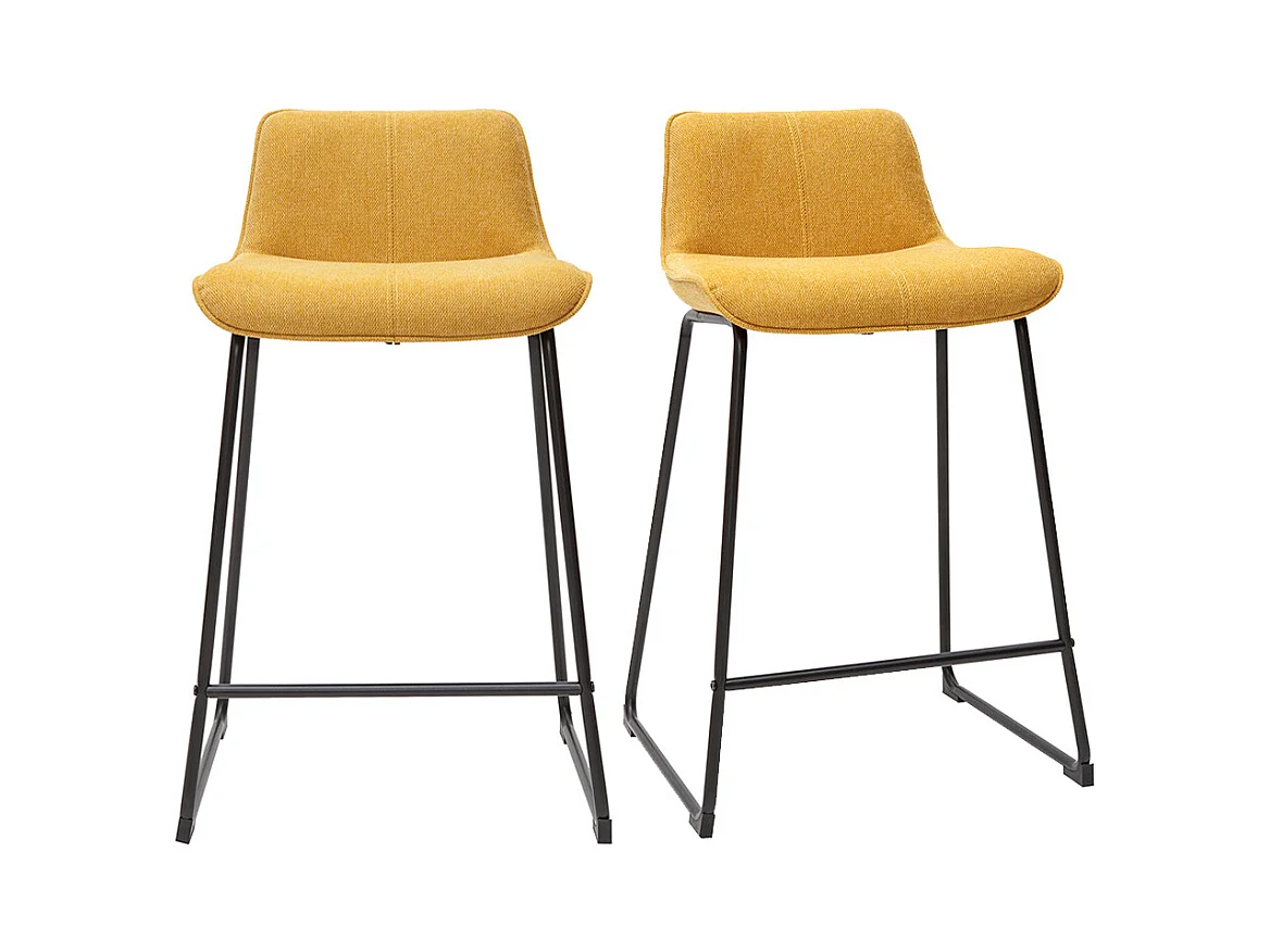 Barhocker senfgelber Stoff mit Samteffekt und Metall H65 cm (2er-Set) BOOST