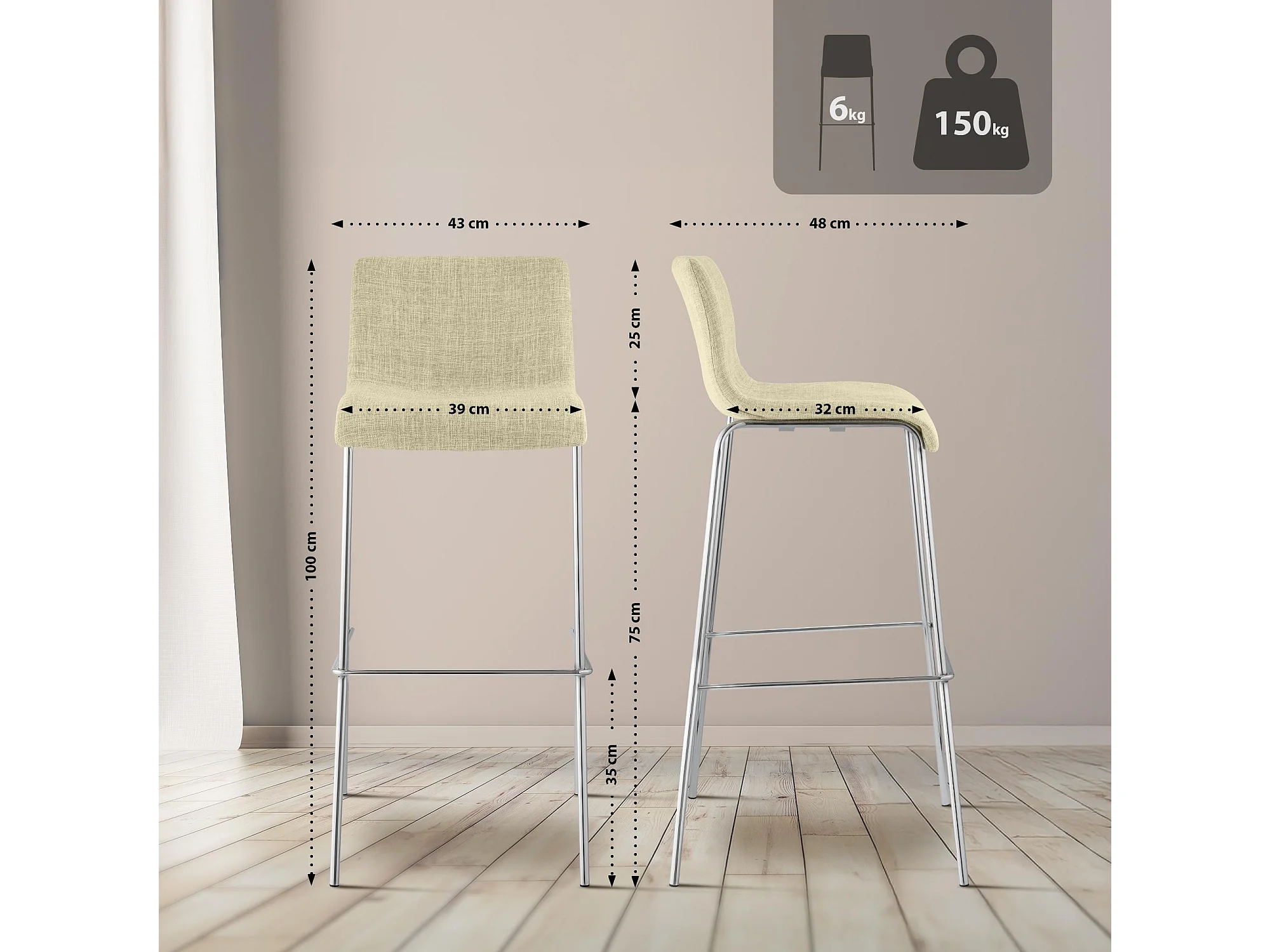 Barhocker - Stoff & chrom - creme - Hoover