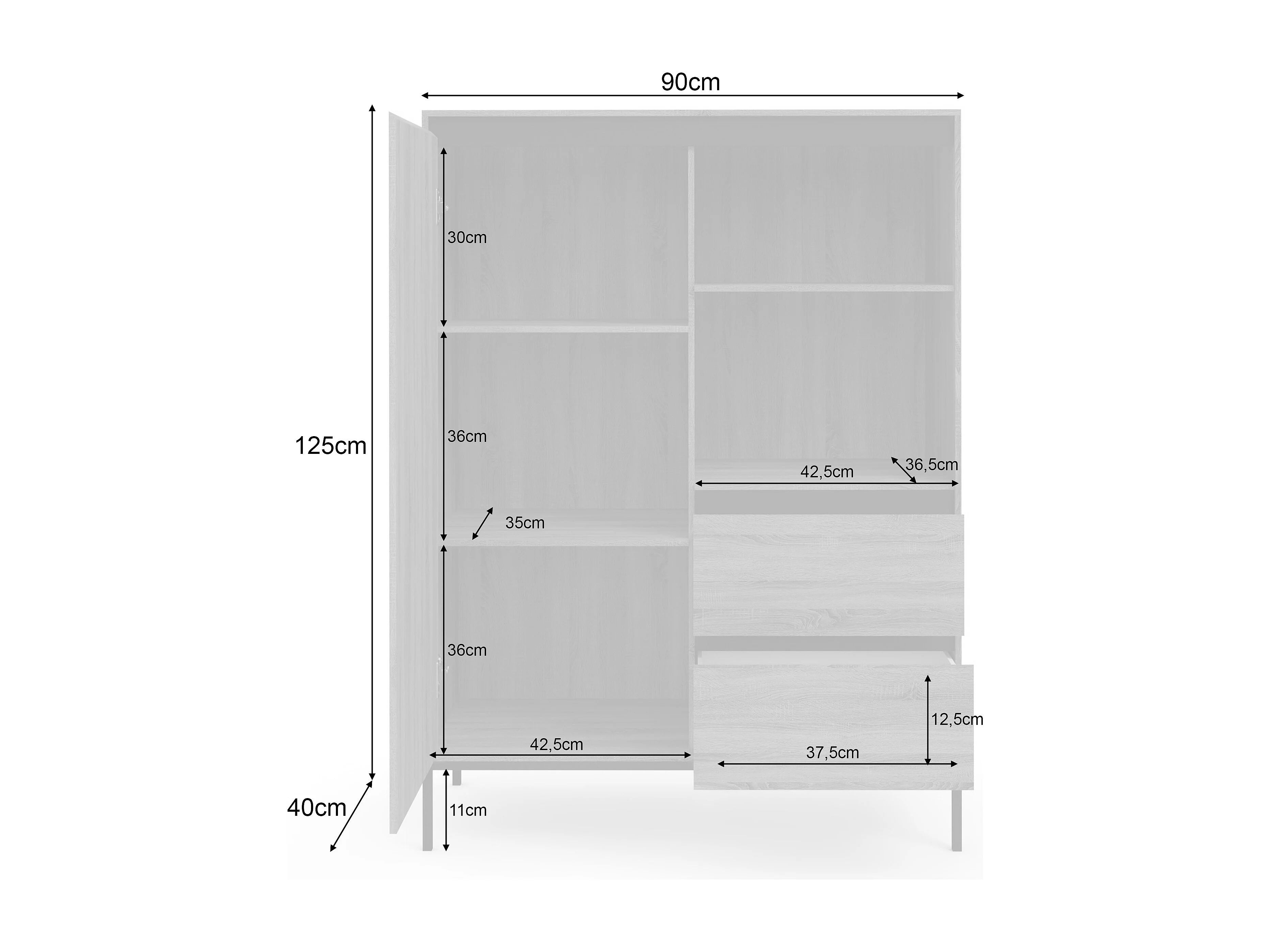 Bari | Schrank mit 1 Tür und 2 Schubladen in Eichenoptik