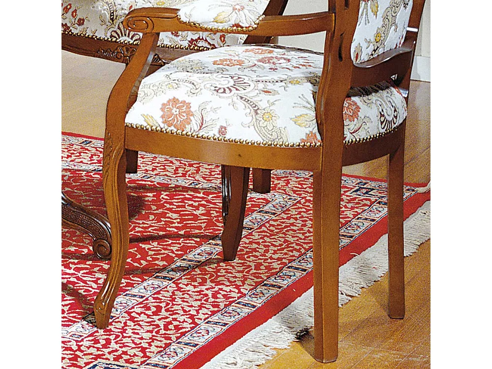 Barock Armlehnenstuhl in Beige gemustert Stoff Nussbaumfarben