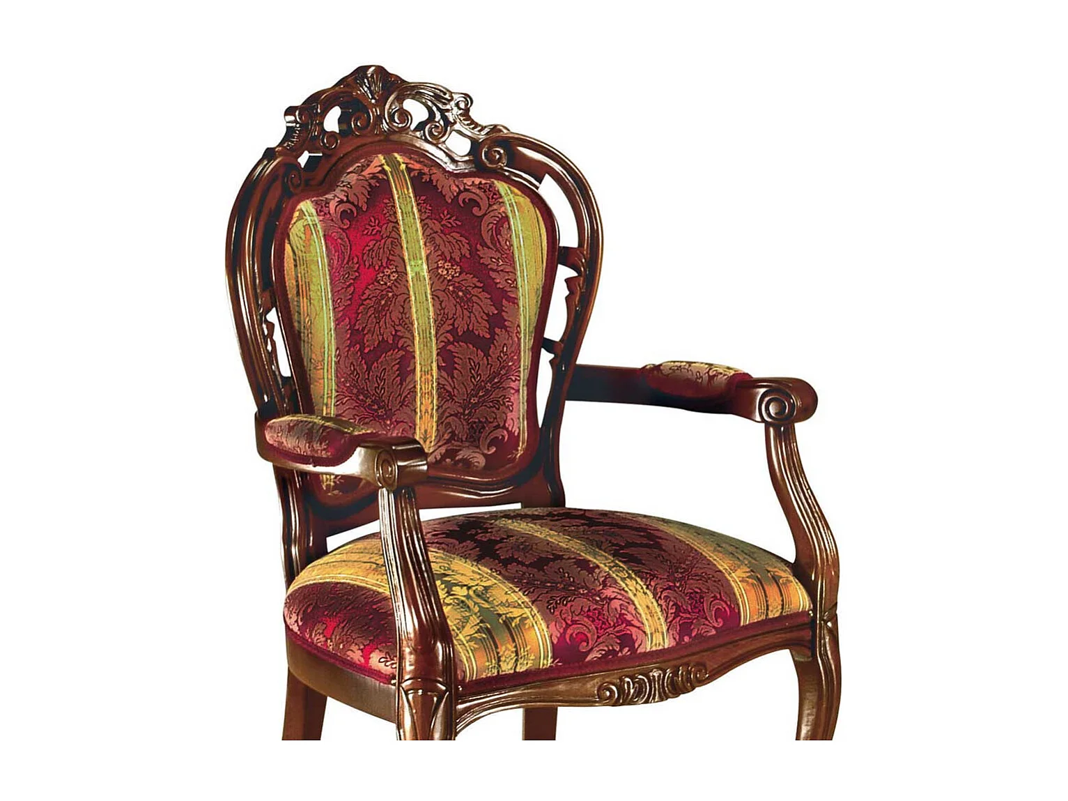 Barock Esszimmersessel in Rot Goldfarben gemustert Nussbaumfarben