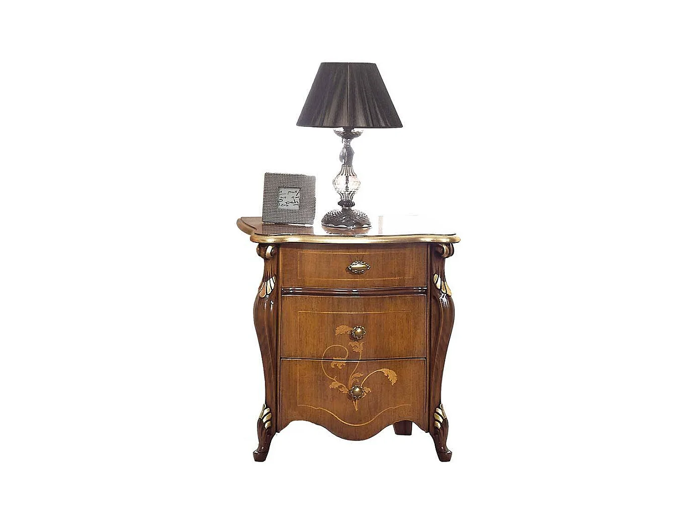 Barocke Kommode in Nussbaumfarben Blätter Intarsien