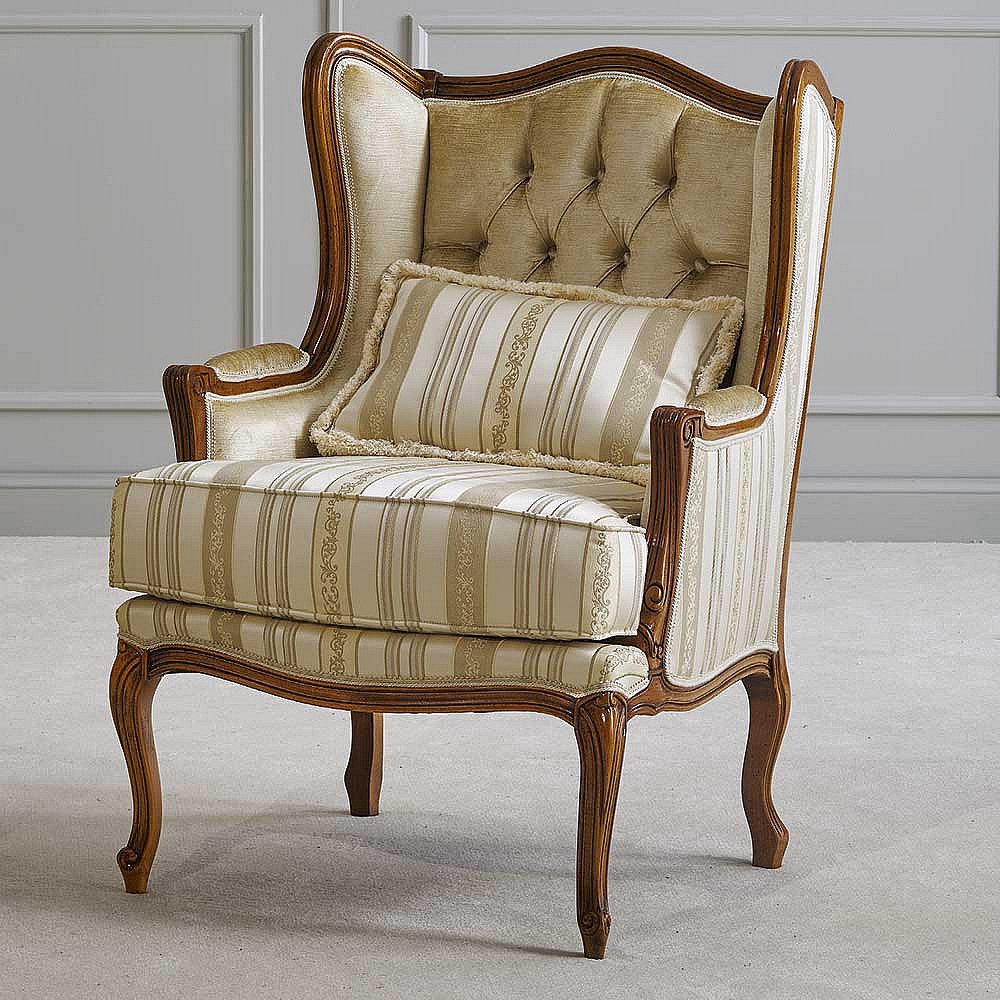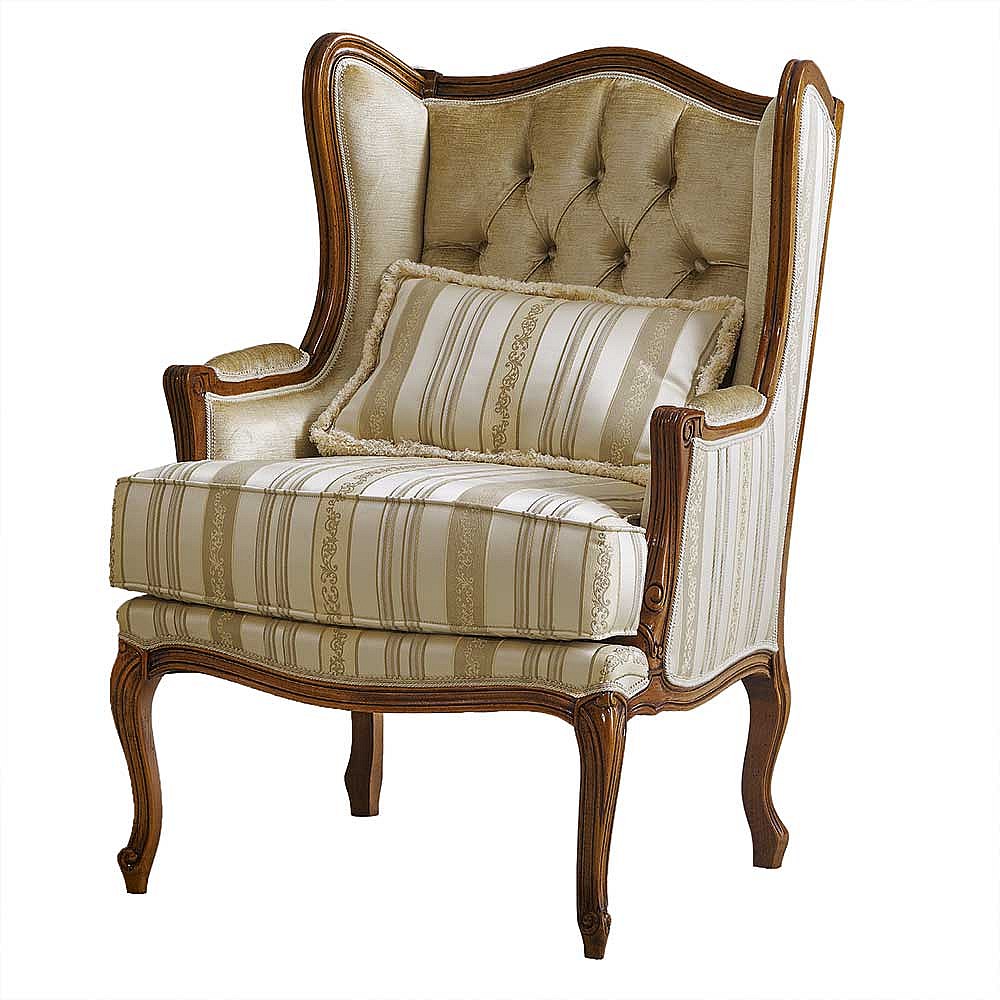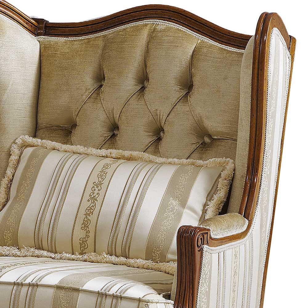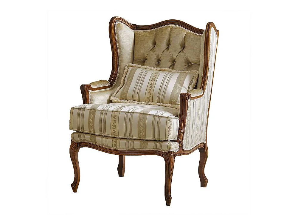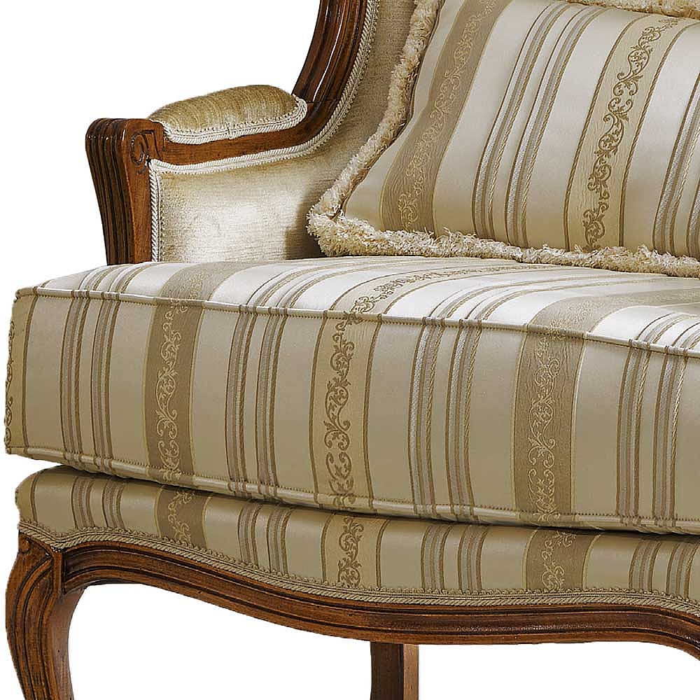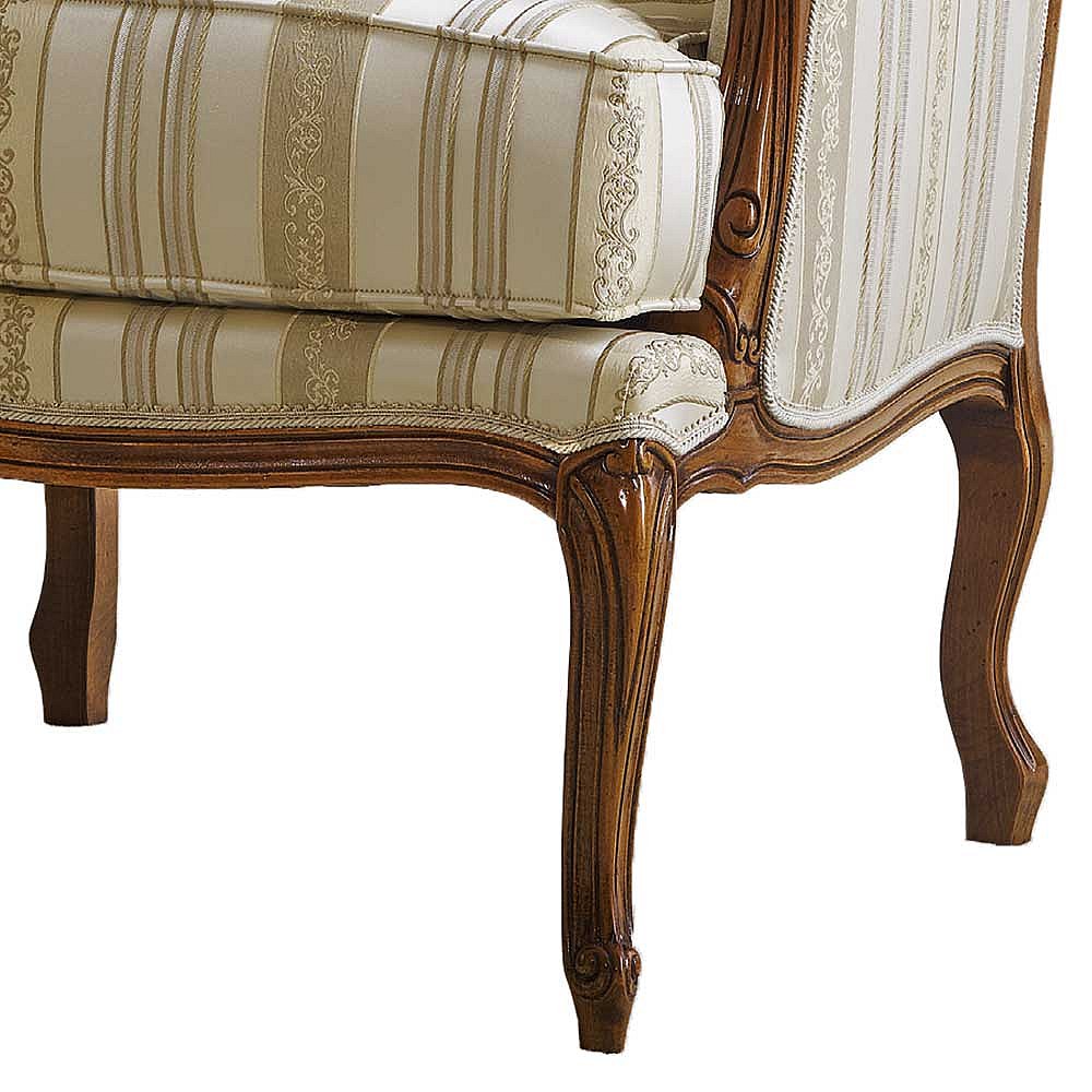 Barocker Armlehnensessel in Beige Stoff Holz Braun