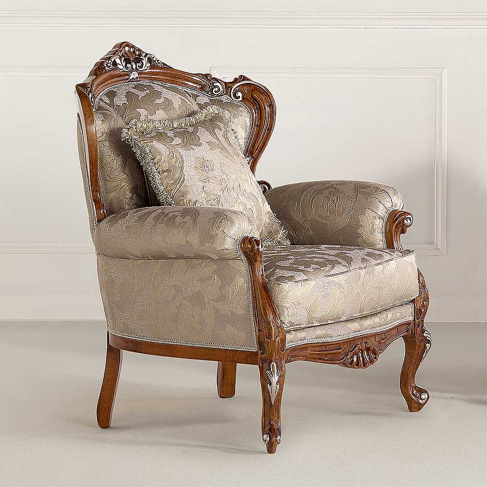Barockstil Einzelsessel in Beige und Buche braun Vierfußgestell aus Holz