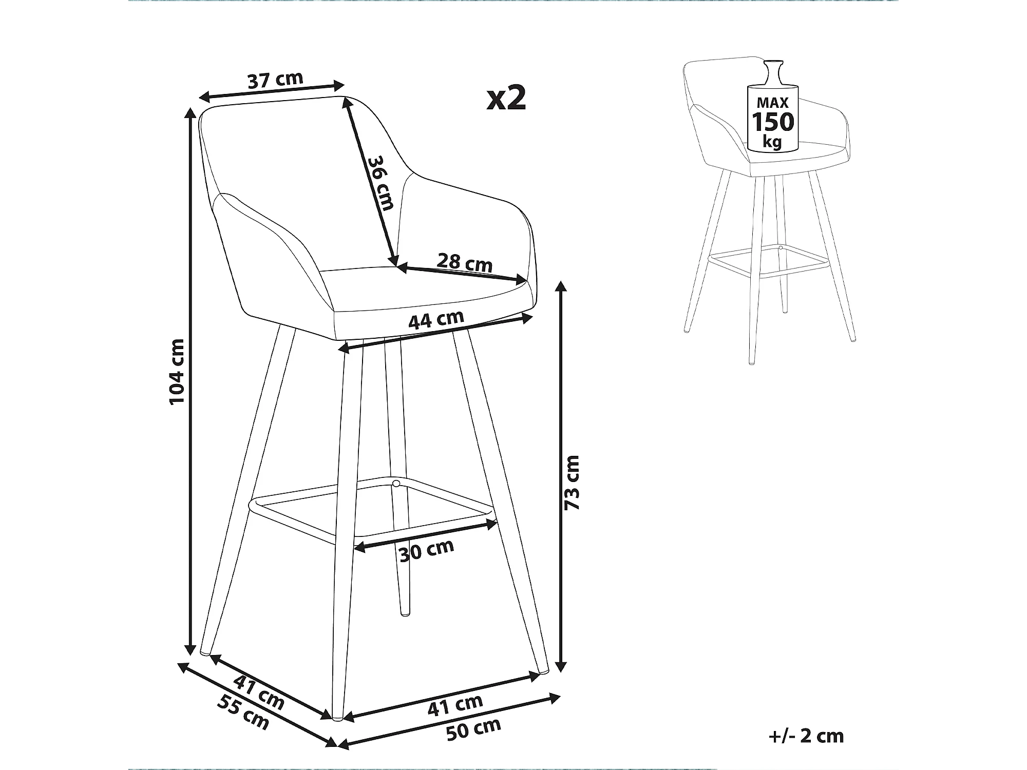 Barstuhl 2er Set Samt grün mit Lehne Armlehnen Fußstützen modern Casmalia