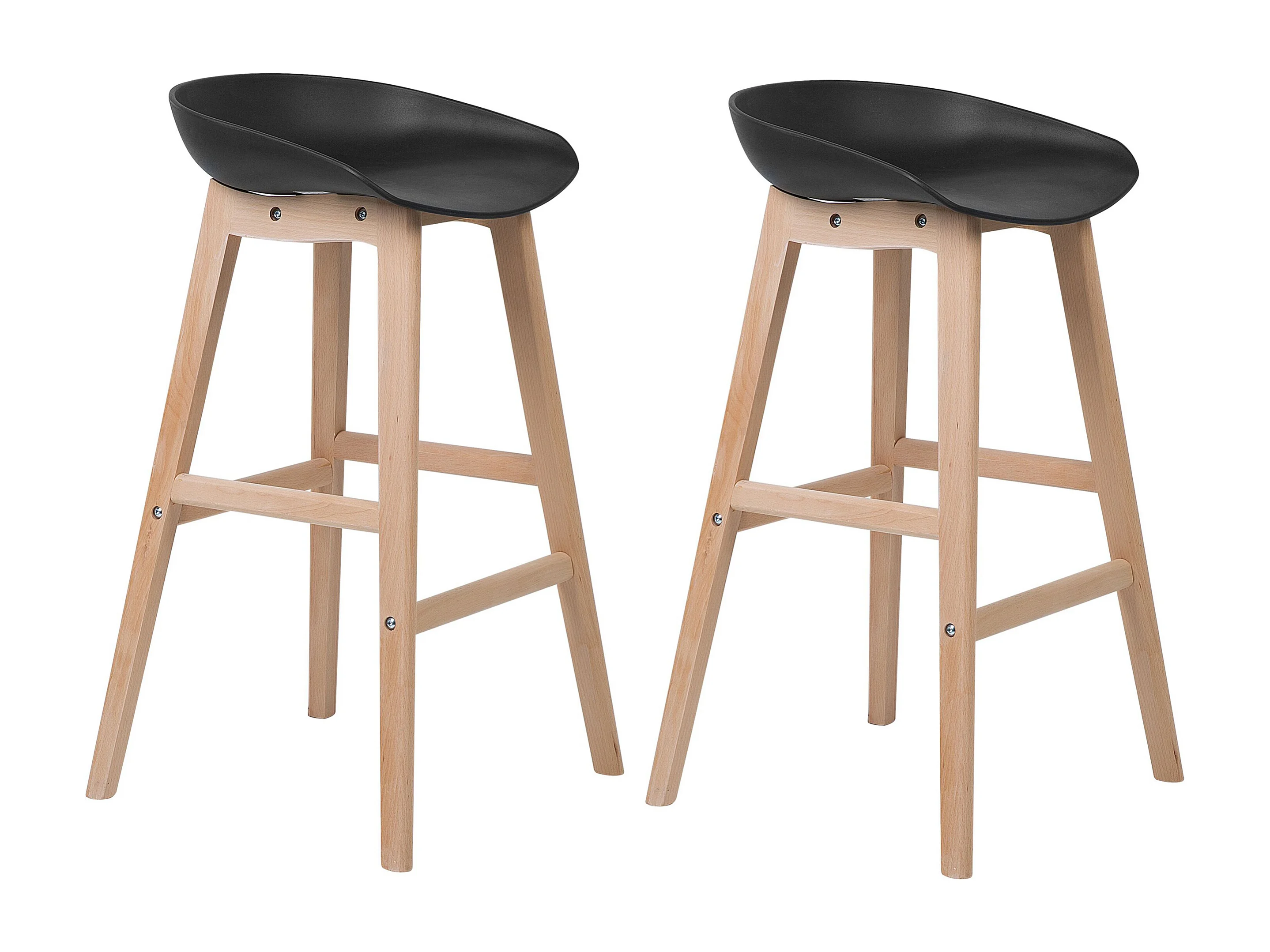 Barstuhl 2er Set schwarz mit Holzbeinen Fußstütze Sitzhöhe 72 cm Micco