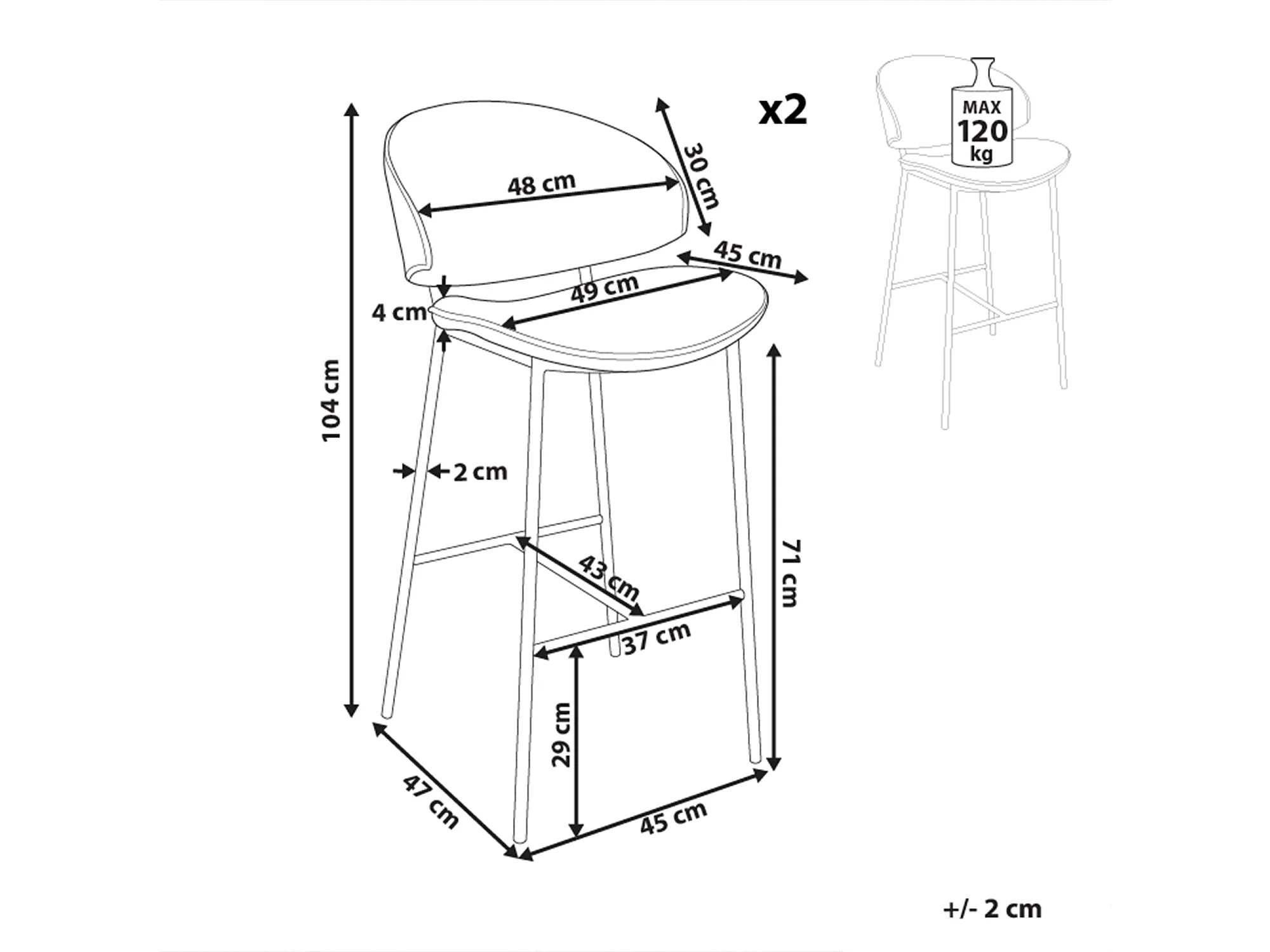 Set mit 2 Barstühlen KIANA Marineblau