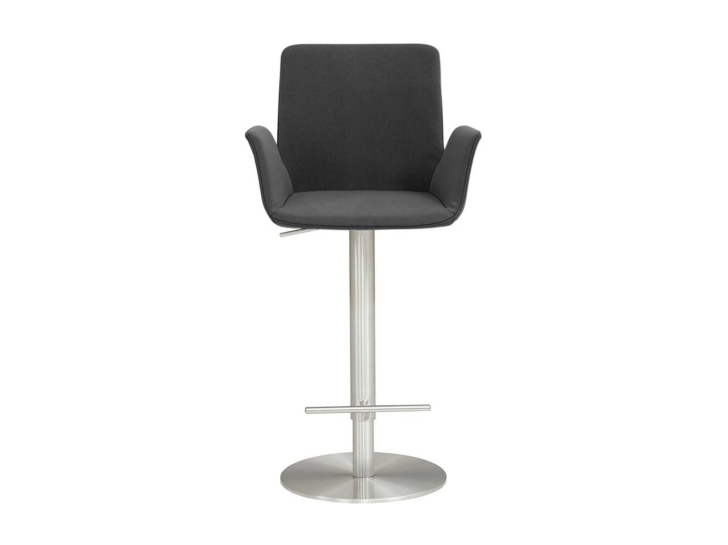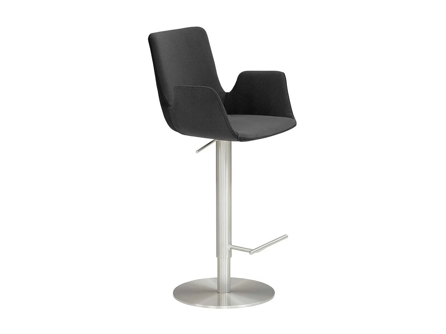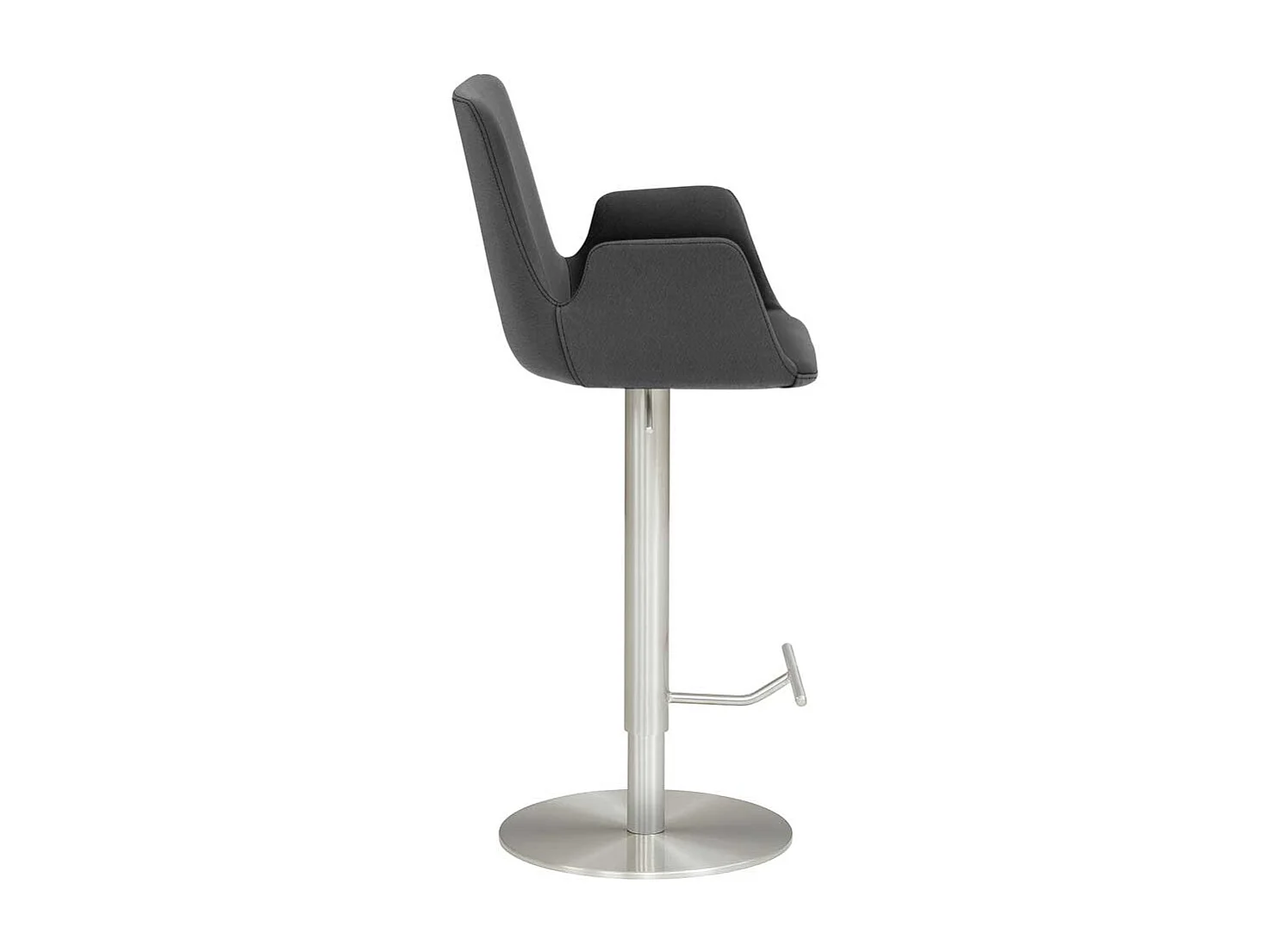 Barstuhl mit Armlehnen Bezug Microfaser Dunkelgrau Tellerfuß Chrom gebürstet