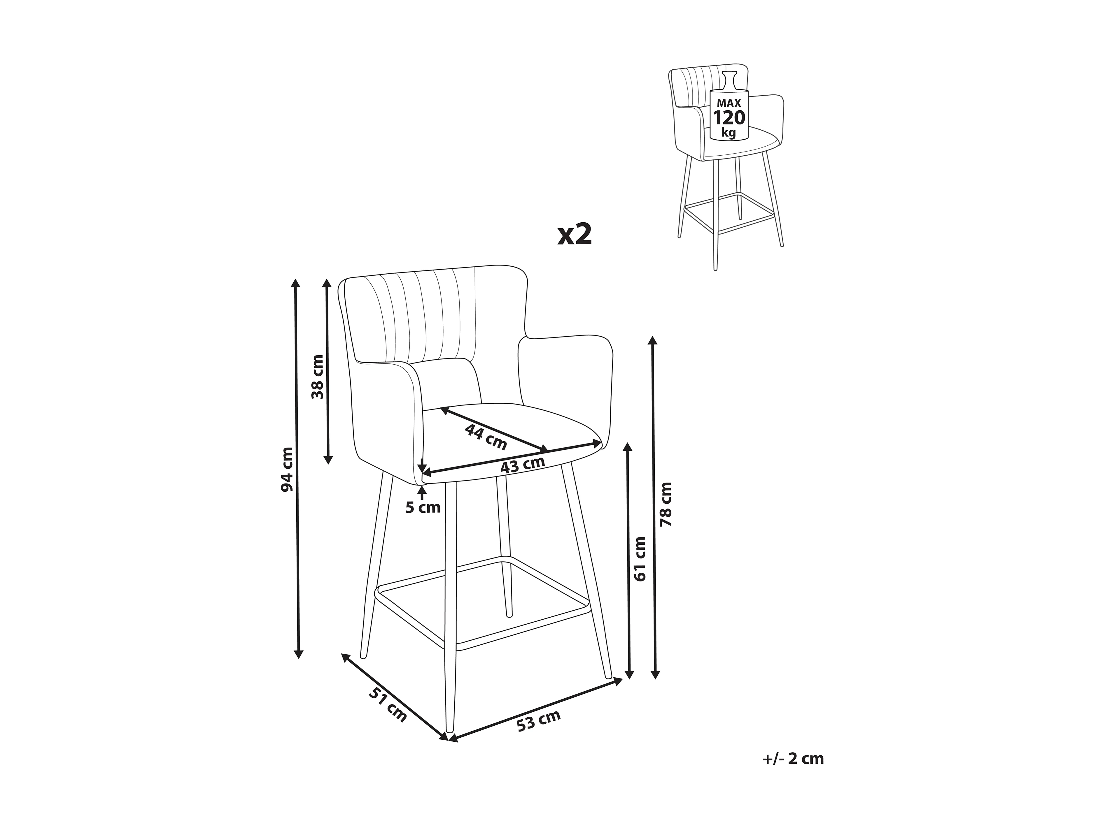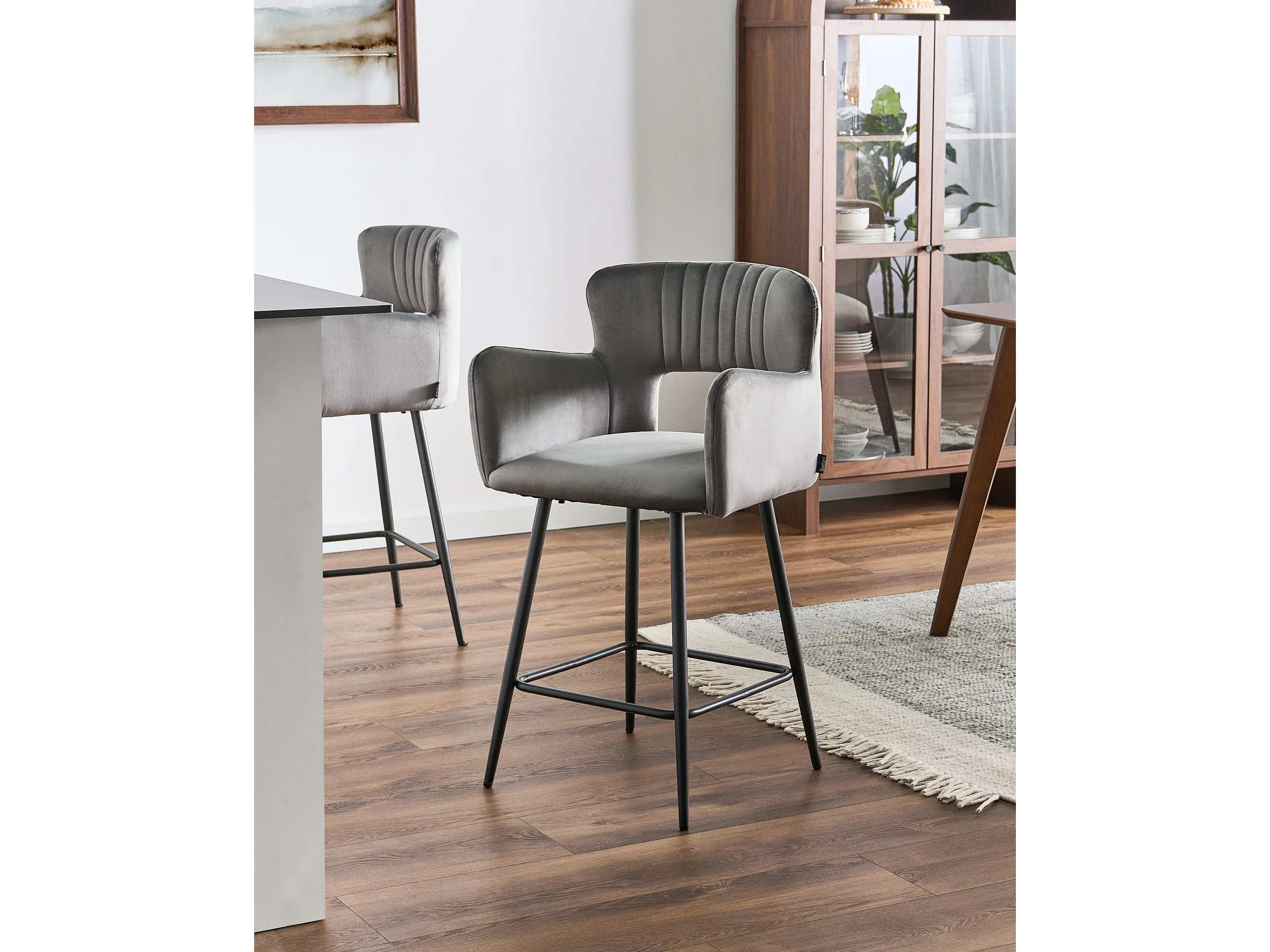 Set mit 2 Barstühlen SANILAC Samtstoff Hellgrau