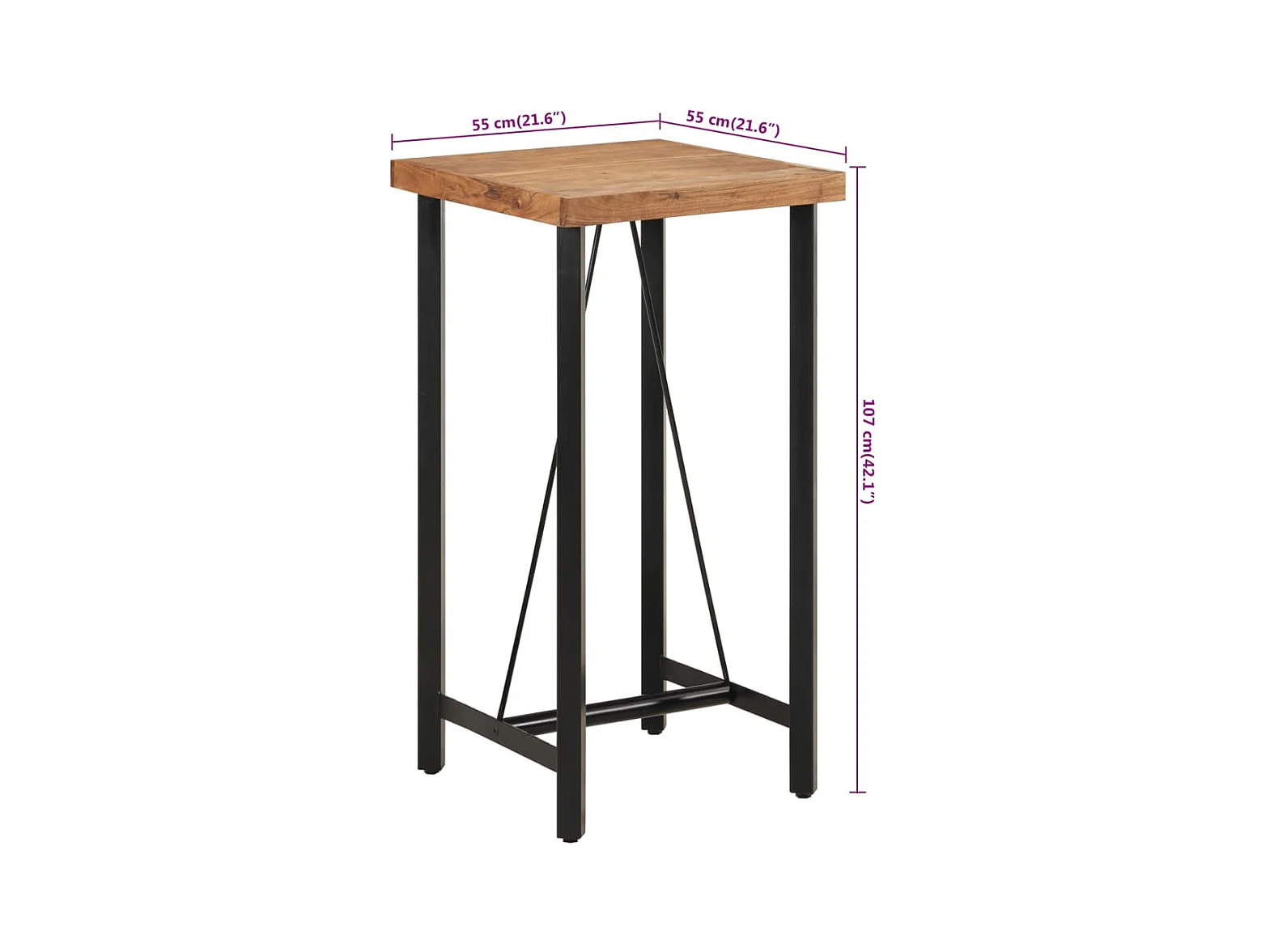 Bartisch 55x55x107 cm Massivholz Akazie und Eisen