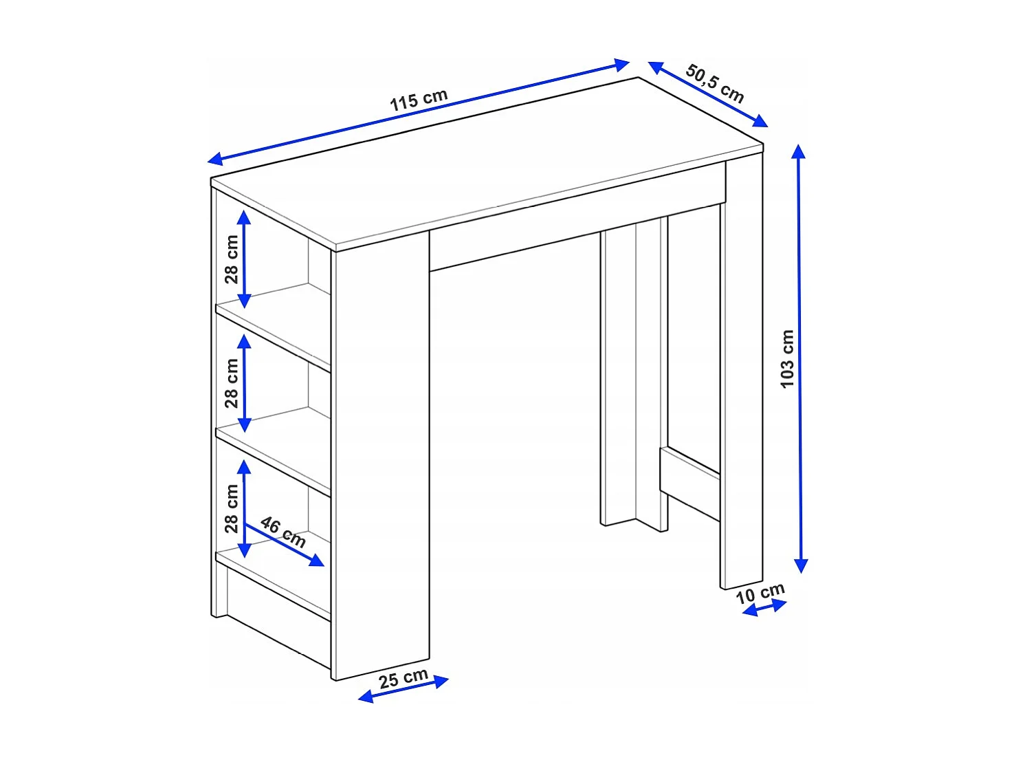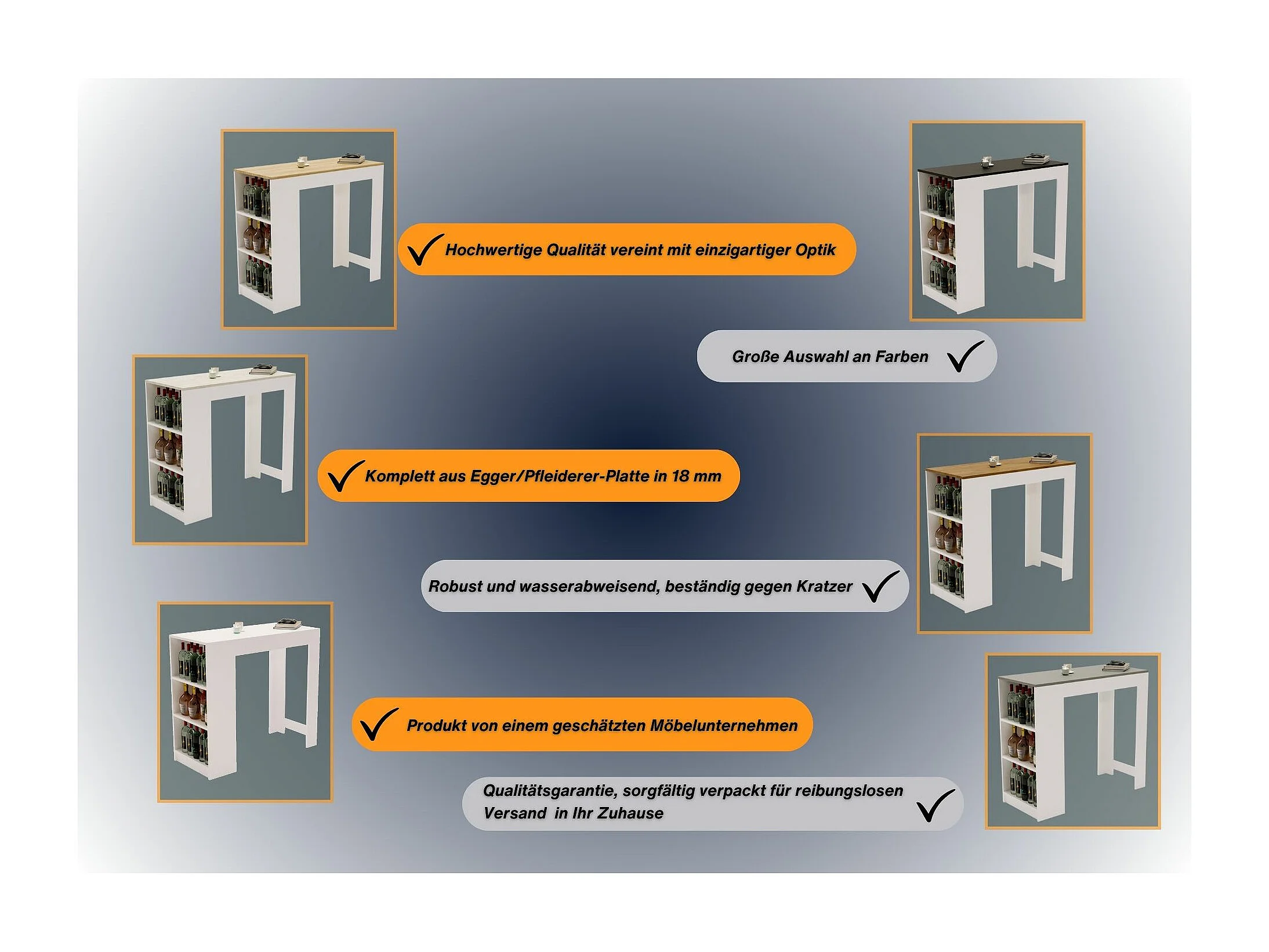 Bartisch mit 3 Regalen Thekentisch freistehend für Küche & Esszimmer Kücheninsel