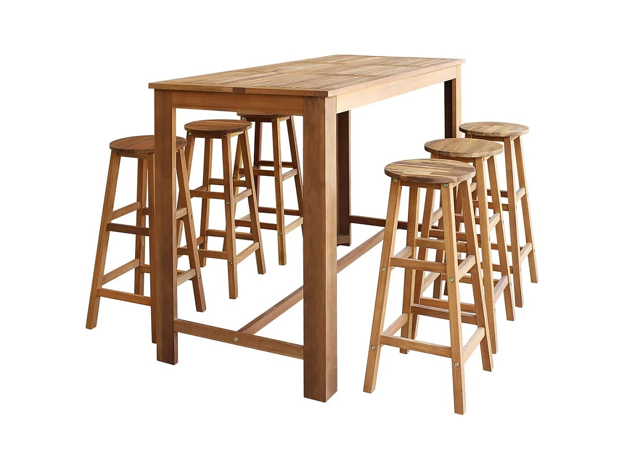 Bartisch und Hocker-Set 7-tlg. Akazienholz Massiv